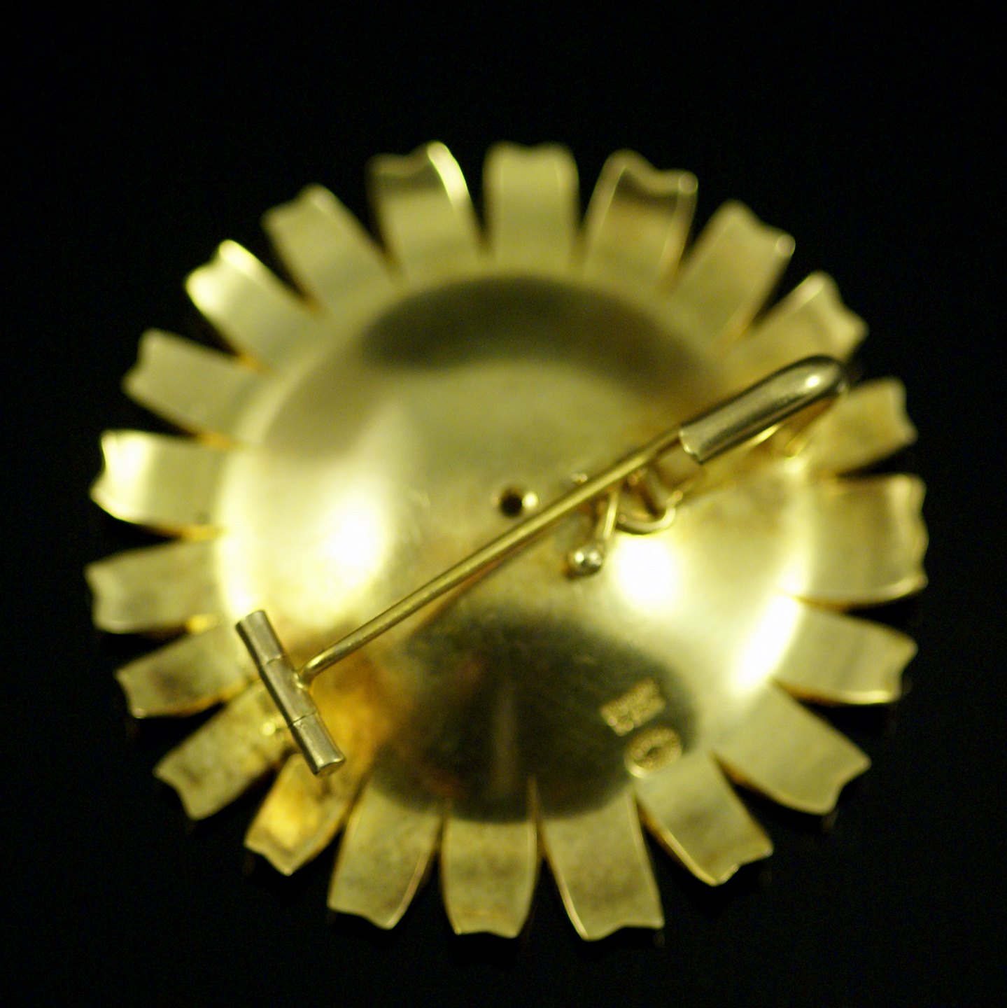 Georg Jensen Marguerit Broche/vedhæng i forgyldt sterling sølv med hvid emalje. 50mm