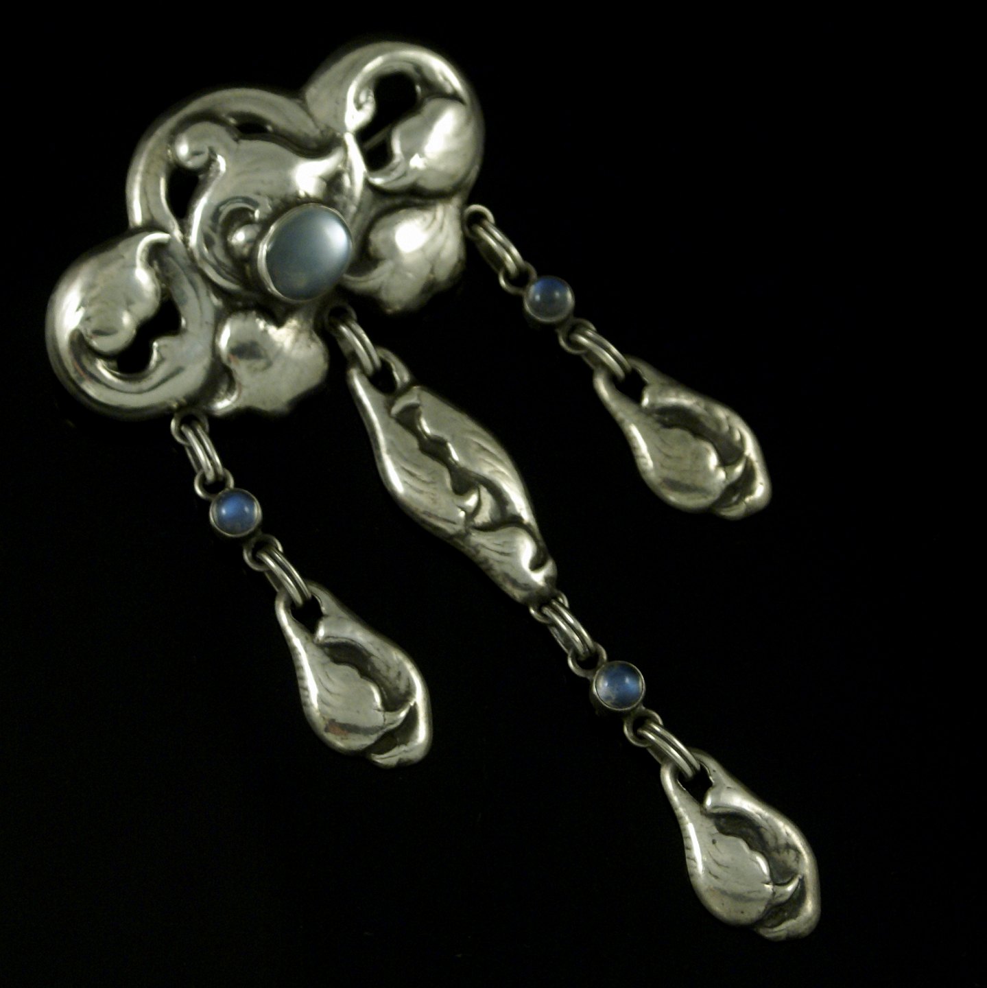 Bernhard Hertz. Skønvirke Broche i sølv med månesten.