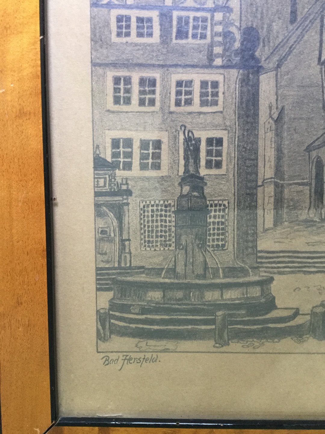 Tegning af V. Sand 1923 - Parti fra Bad Hersfeld, Tyskland.