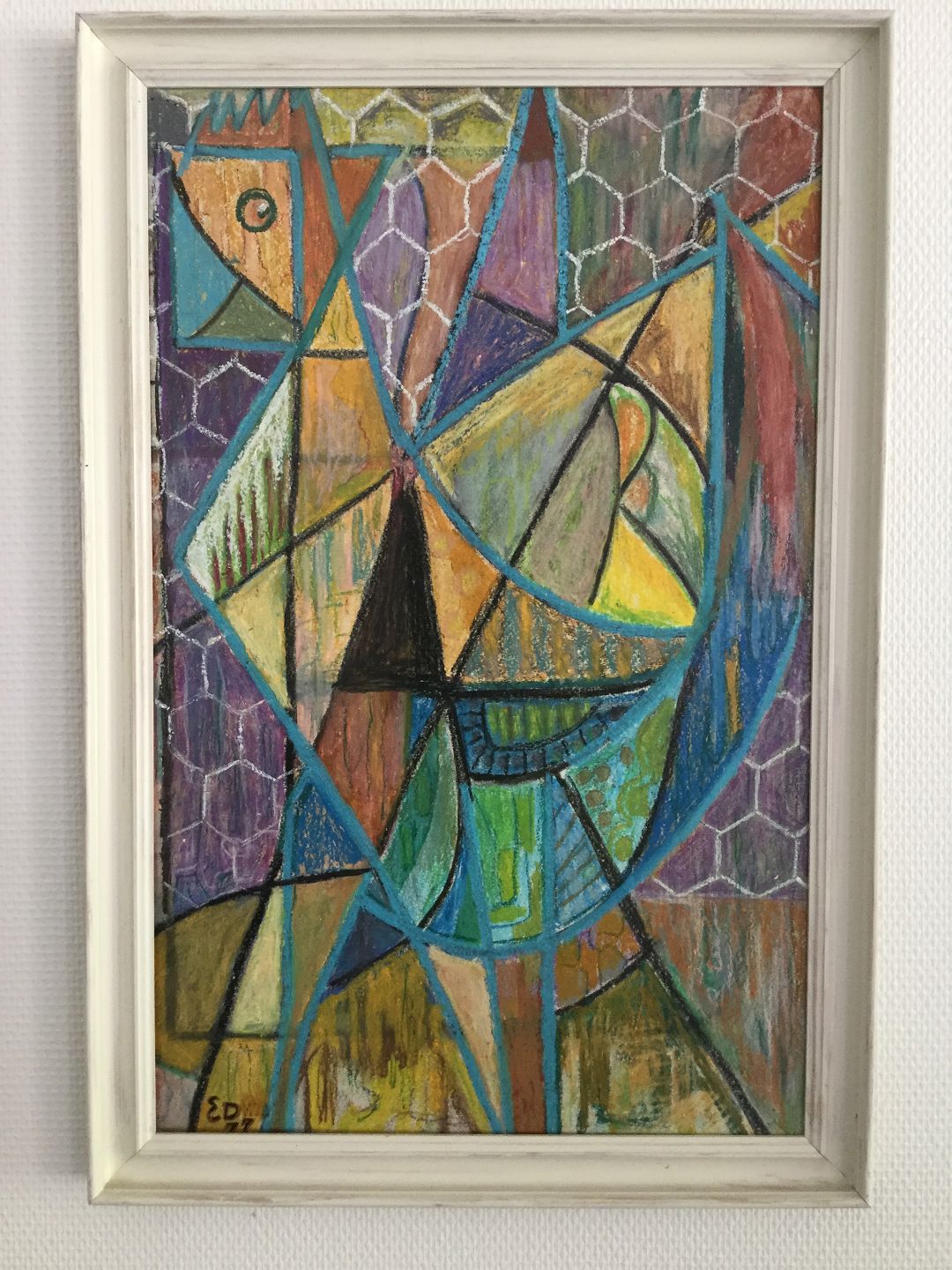 Maleri af Edwin Dalgaard "Den Selvbevidste Hane" 1977.