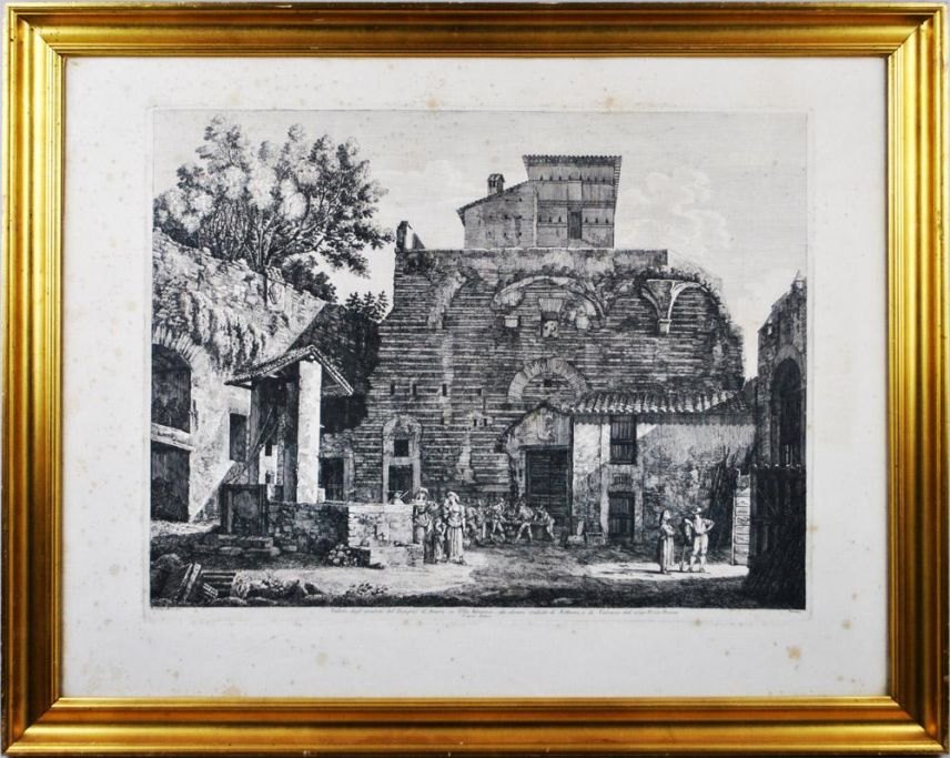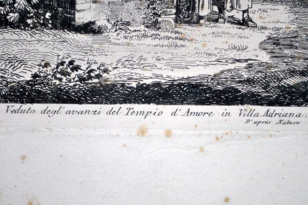 Rossini, Luigi (1790 - 1857) Italien. Tempio d'Amore in Villa Adriana. Kobberstik. Signeret. 37 x 48 cm.