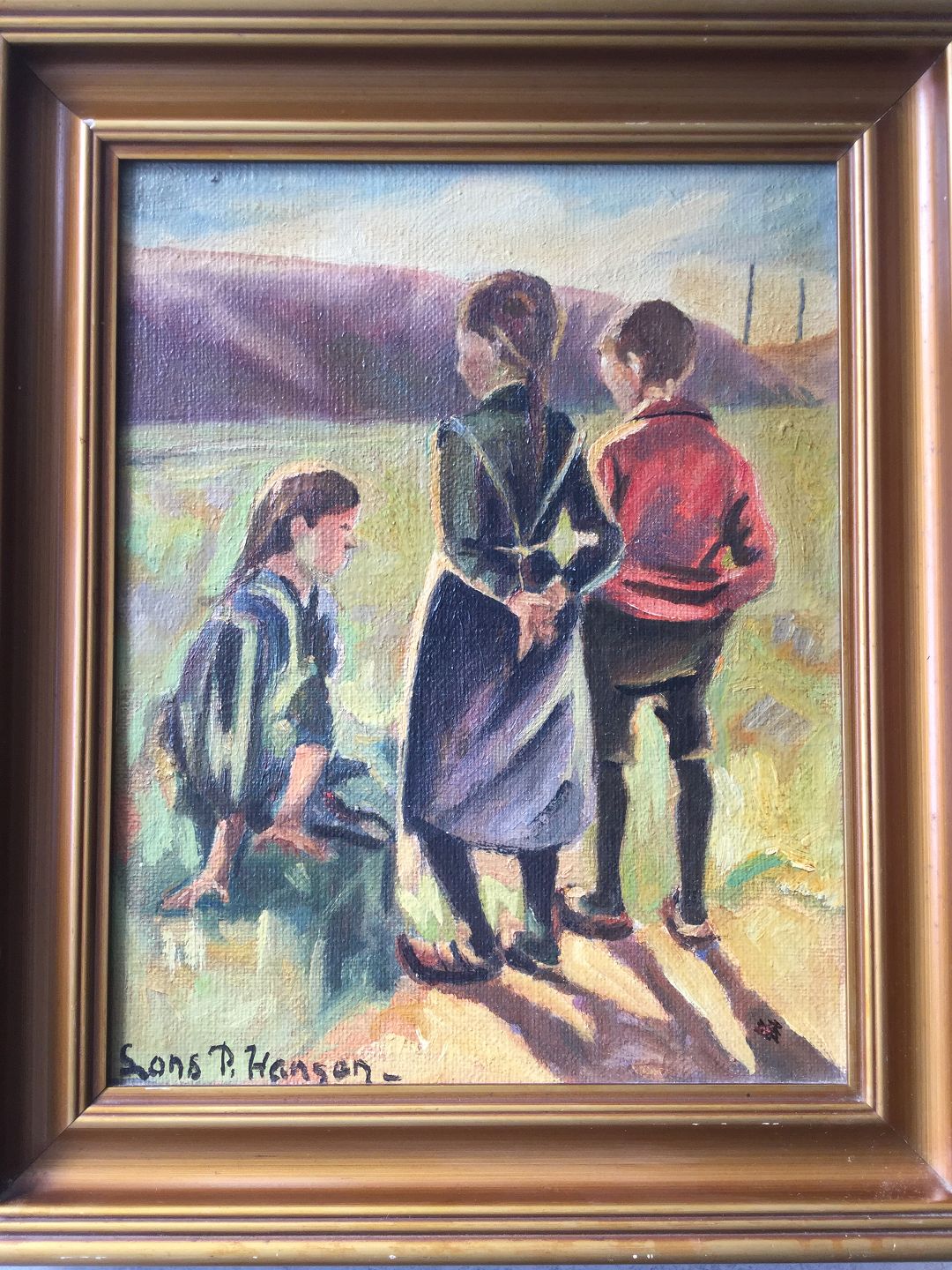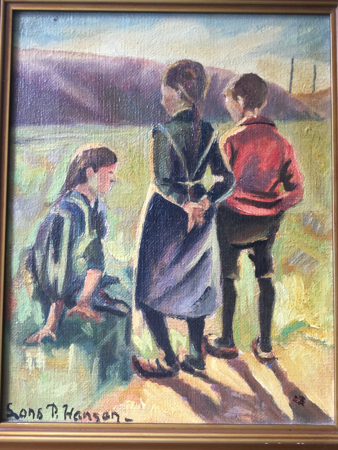 Maleri af Lars P. Hansen - 3 børn i landskab.