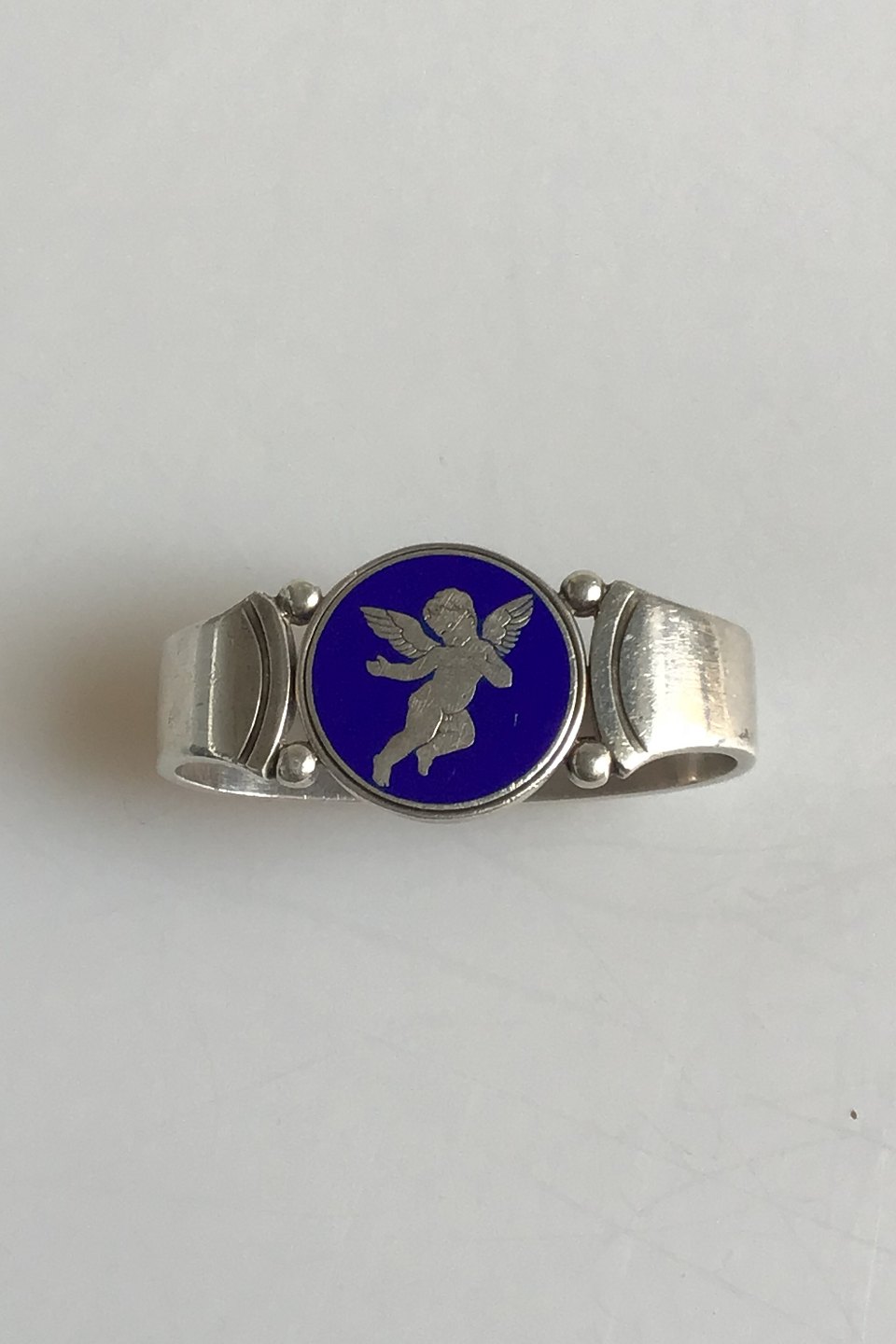 Georg Jensen Sterling Sølv Servietring. Lille engel på blå emalje Design Harald Nielsen(1945-52) Måler 5,4 cm x 3 cm. Vejer 33,7 gram