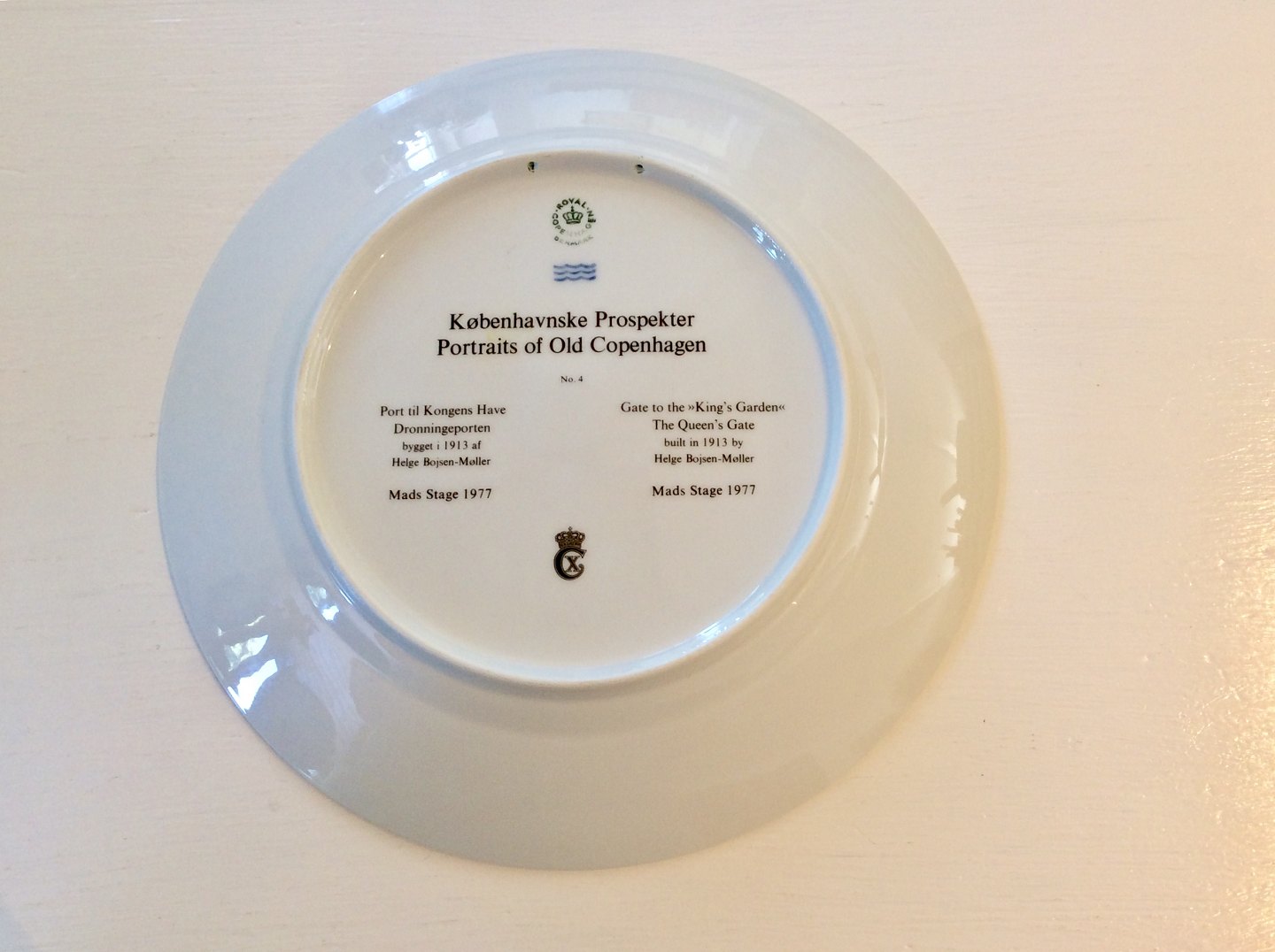 Royal Copenhagen, københavnske Prospekter, nr.4 Port til Kongens Have Dronningeporten, Mads Stage 1977, 27cm i diameter *Perfekt stand*