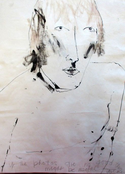 Clyde, Margaret (20. årh.) England: Selvportræt. Tusch, akvarel. 38 x 27,5 cm. Usigneret.