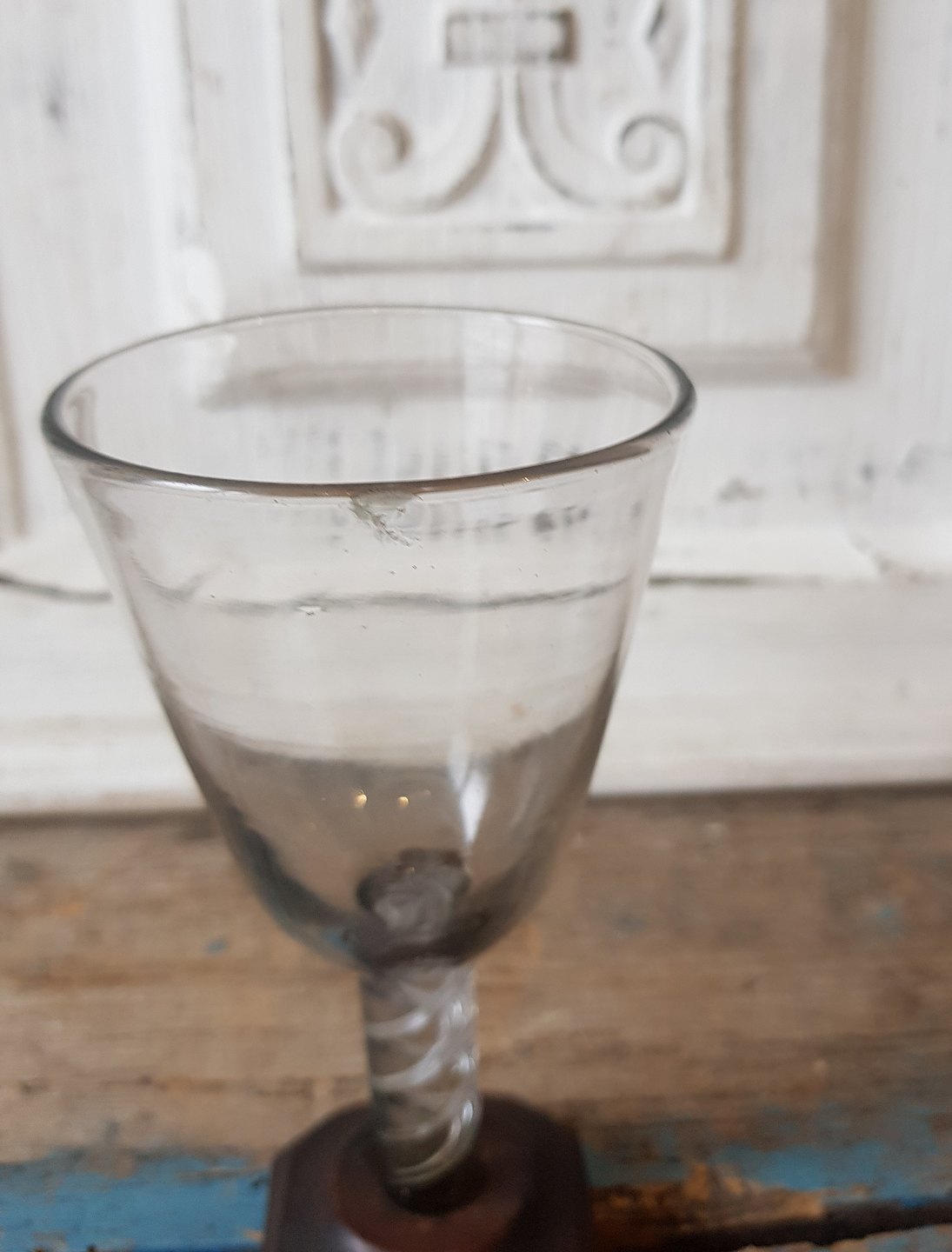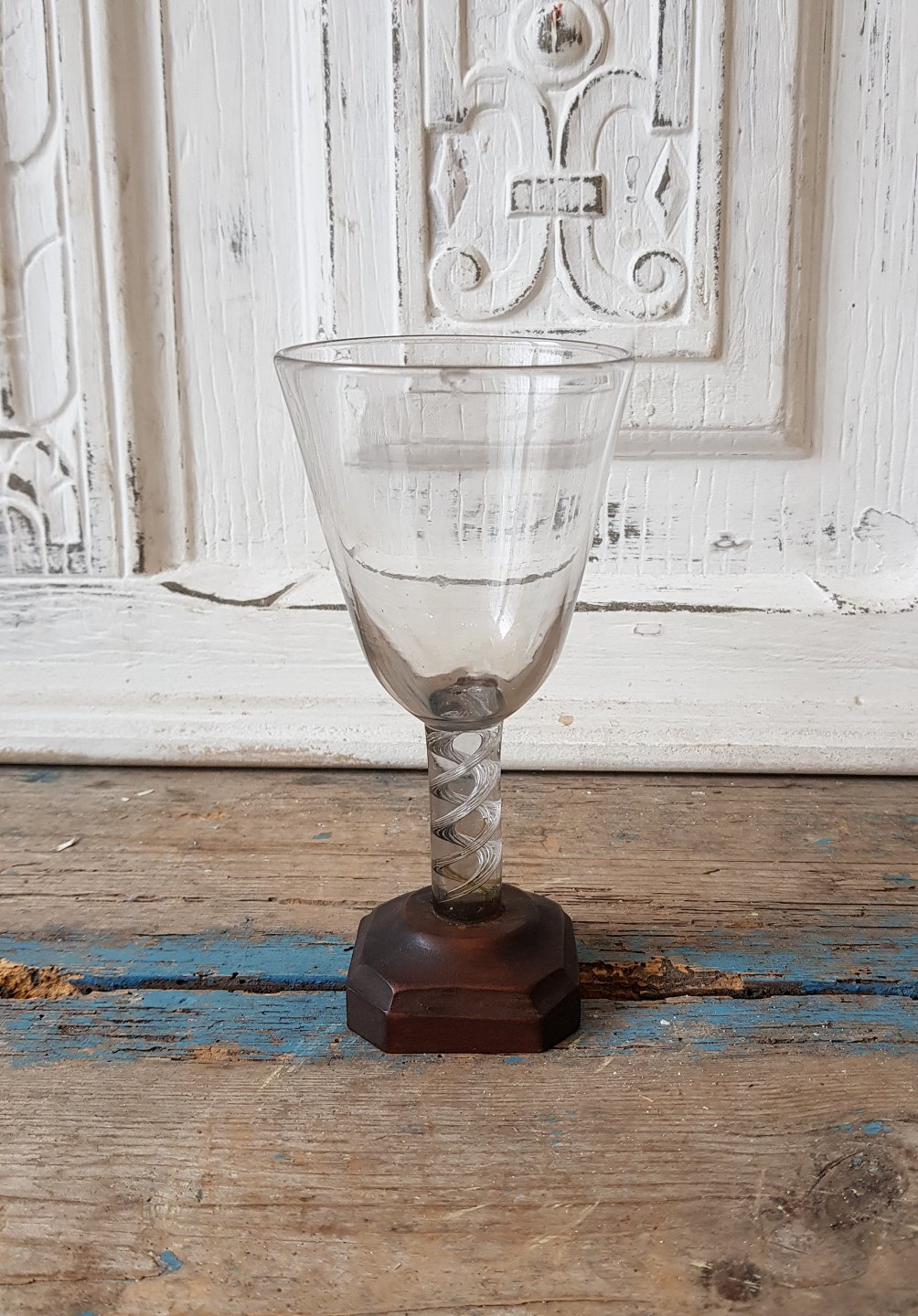 Norsk 1700tals glas med luft spiral i stilken på træfod.