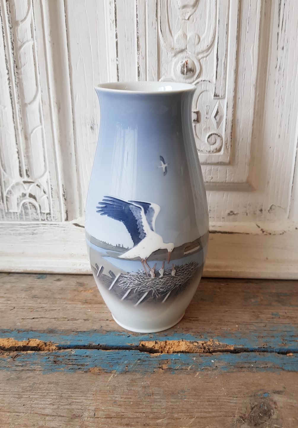 B&G vase dekoreret med storke rede