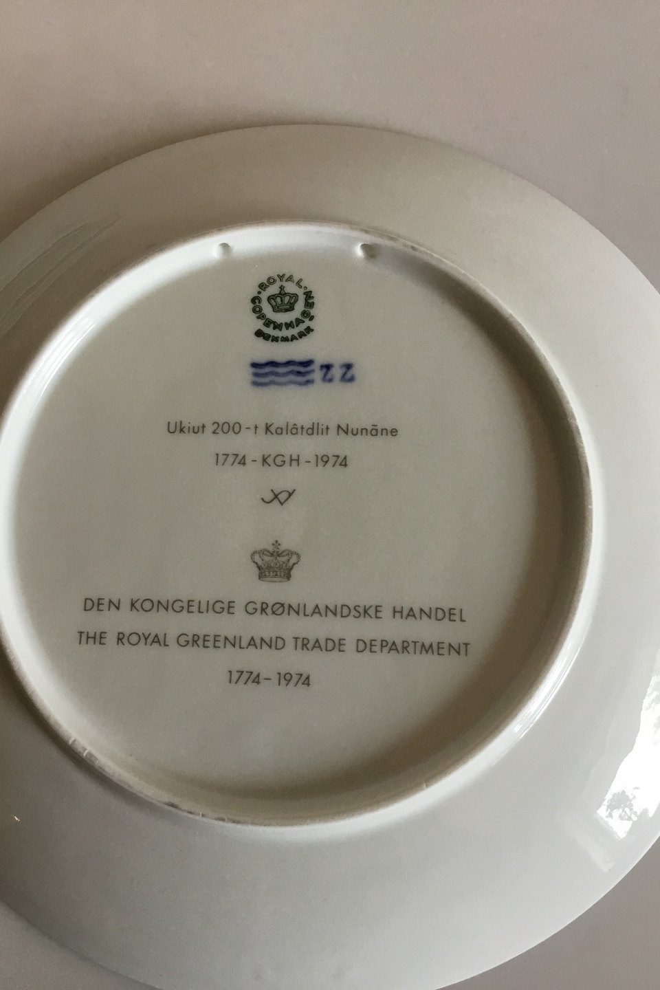 Royal Copenhagen Mindeplatte for KGH Den Kongelige Grønlandske Handel 200 år (1774-1974). Designet af Sven Vestergaard. Måler 20,5 cm