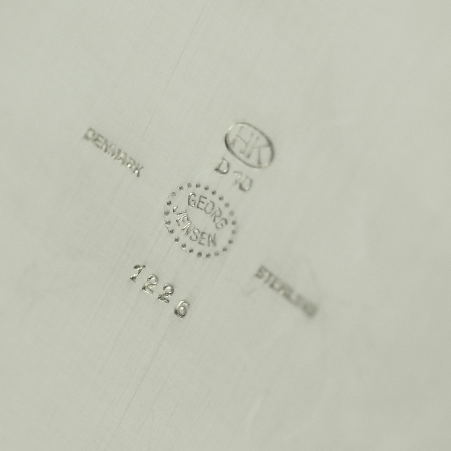 Stemplet med post 1945 Georg Jensen Stempler. HK, Sterling, Denmark (D10).
