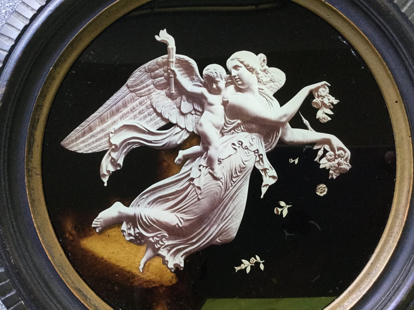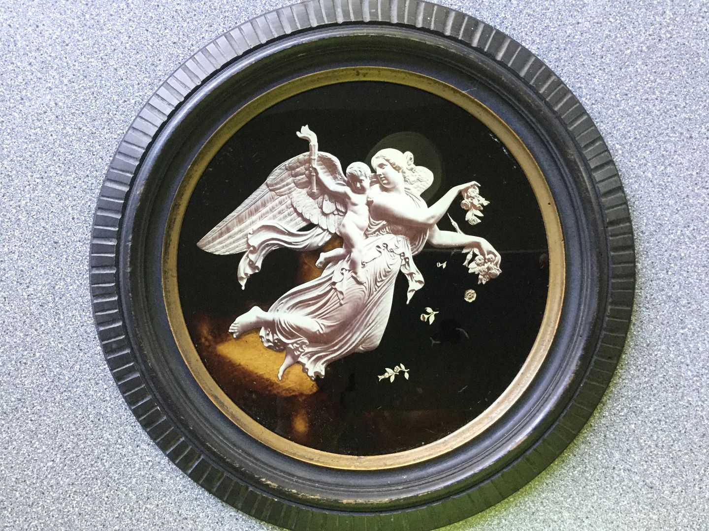 Thorvaldsen motiv i rund egetræsramme med tandsnit.