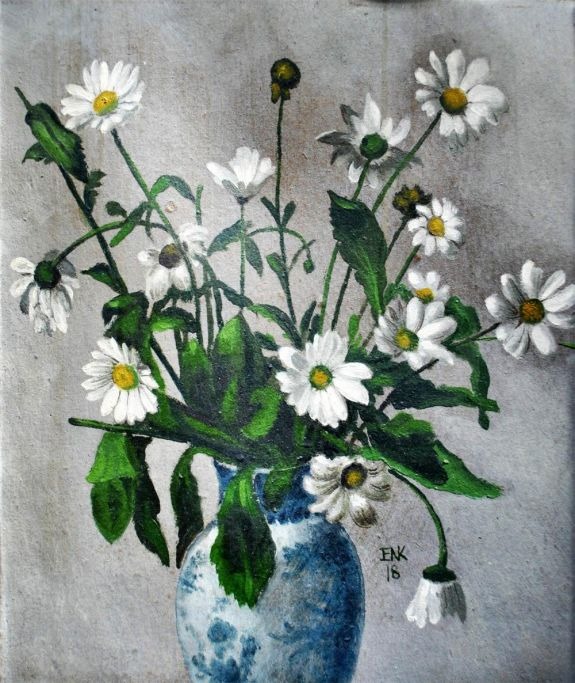 Korlind, Einar Nielsen (1884 - 1975) Danmark. Opstilling med blomster. Olie på pap. Signeret: Monogram 18. 37 x 31 cm.