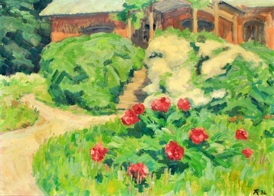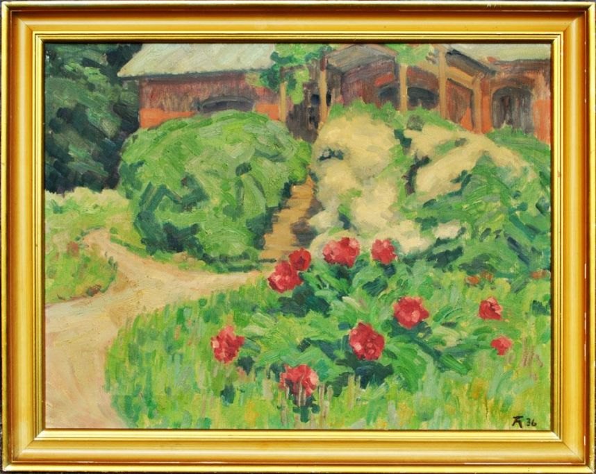 Henriques, Frans (1882 - 1956) Danmark: En have. Olie på lærred. 57 x 74 cm. Signeret monogram: FH 36.
