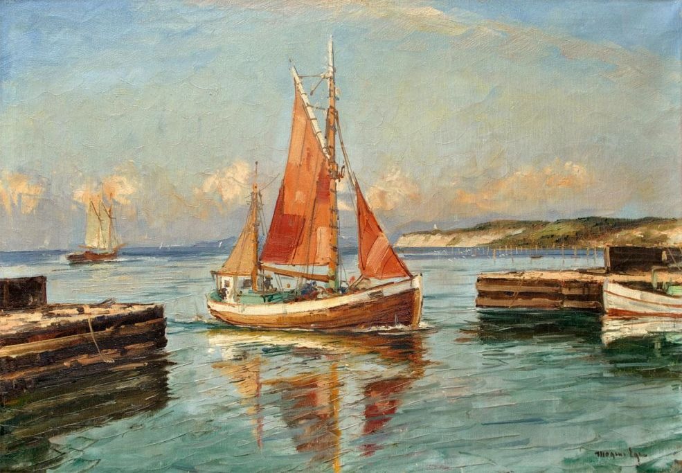 Ege, Mogens (1892 - 1946) Danmark. Kutter i havn.
