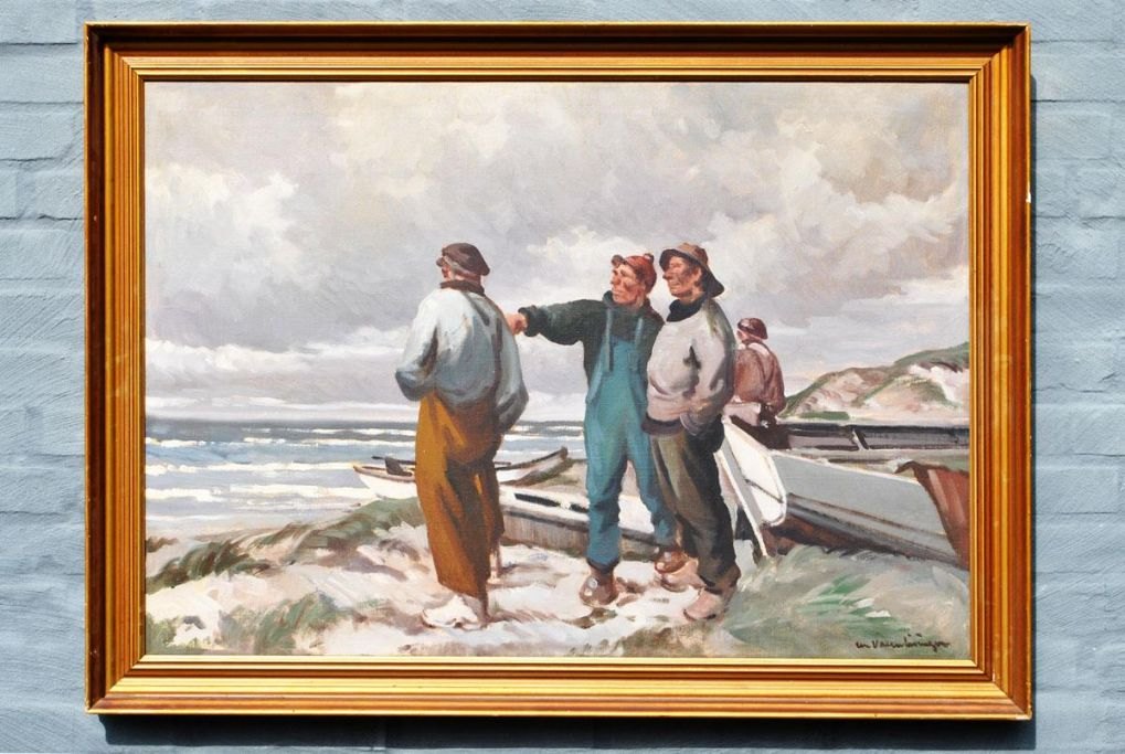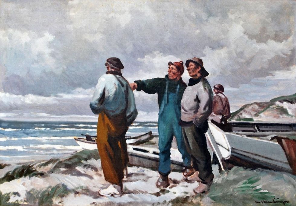 Valentinussen, Chr. (1903 - 1985) Danmark: Fiskere på stranden.