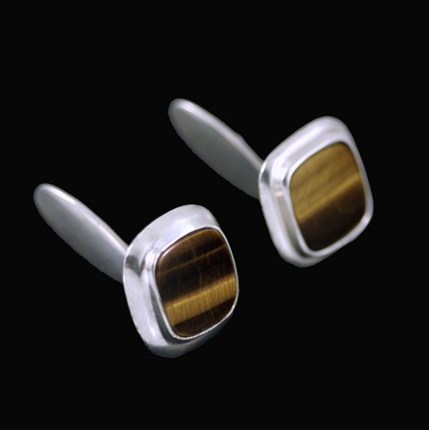 A.P. Berg. Manchetknapper i sterlingsølv med tigerøje. 1960erne.