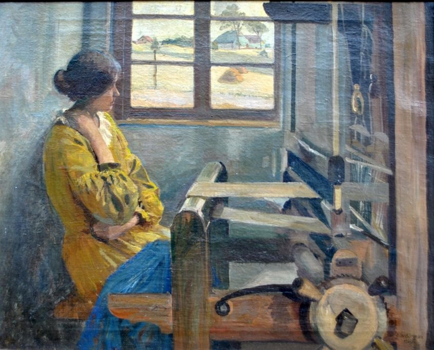 Sørensen, Eiler (1869 - 1953) Danmark: En ung kvinde ved en væv