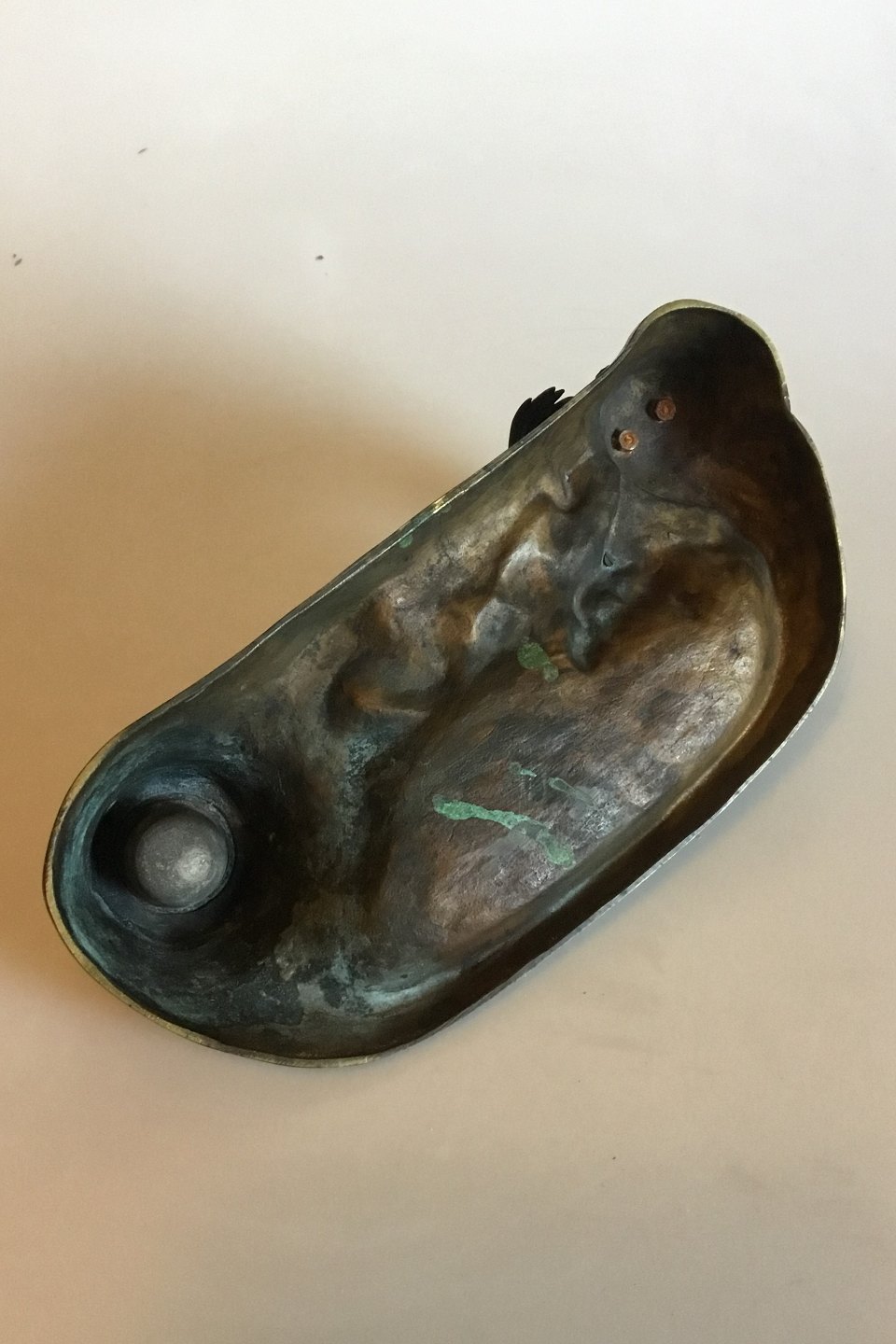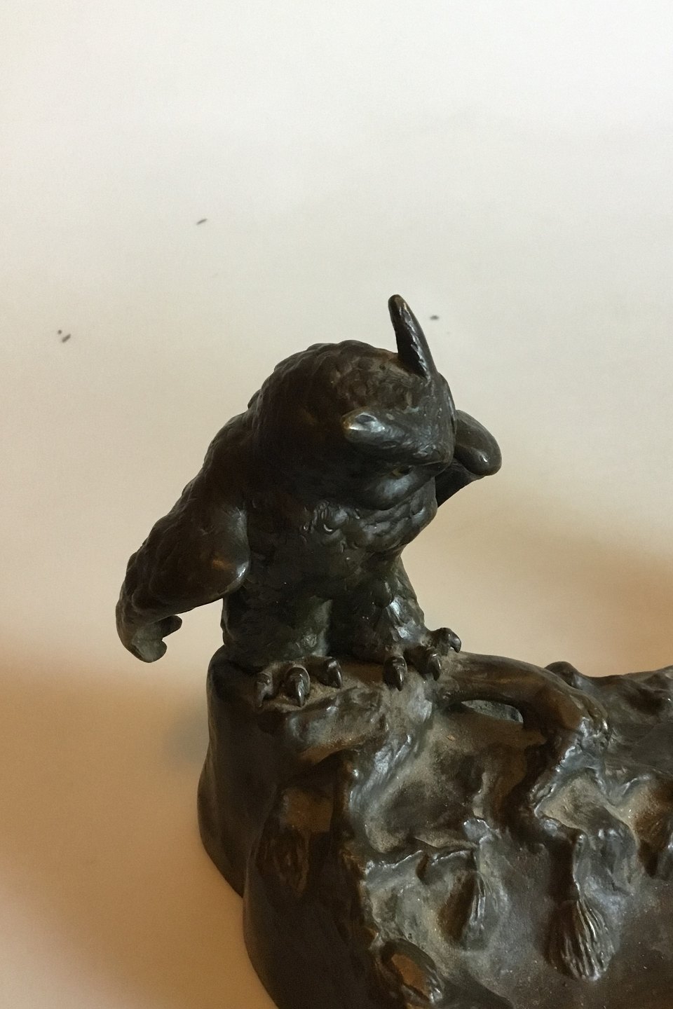 Bronze Penneholder med Blækhus. Dekoreret med ugle