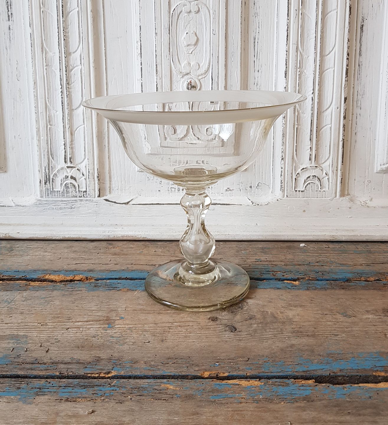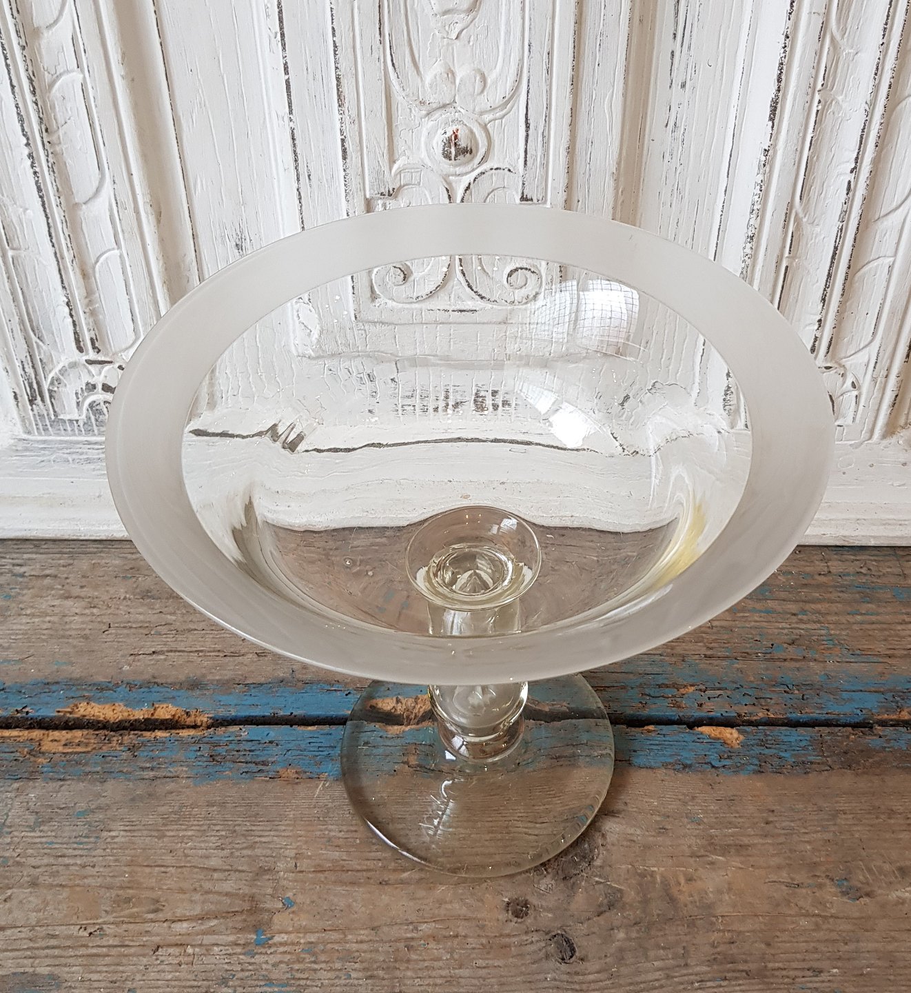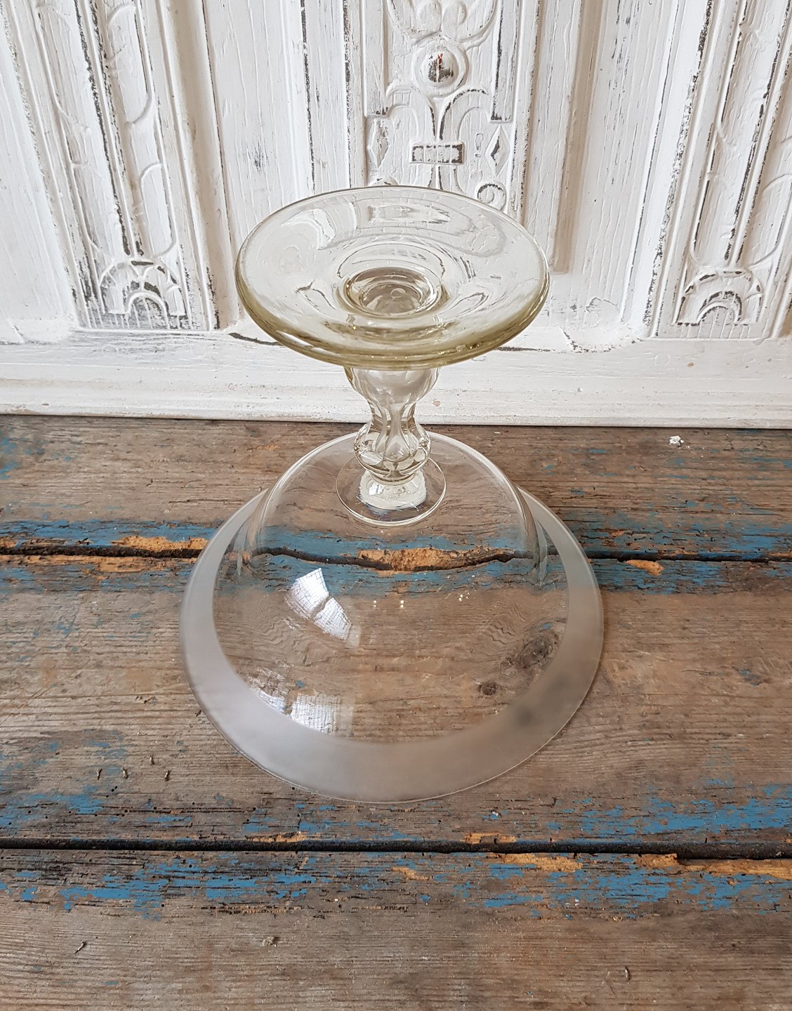 Stor mundblæst glas opsats med båndslebet kant fra 1800tallets slutning.