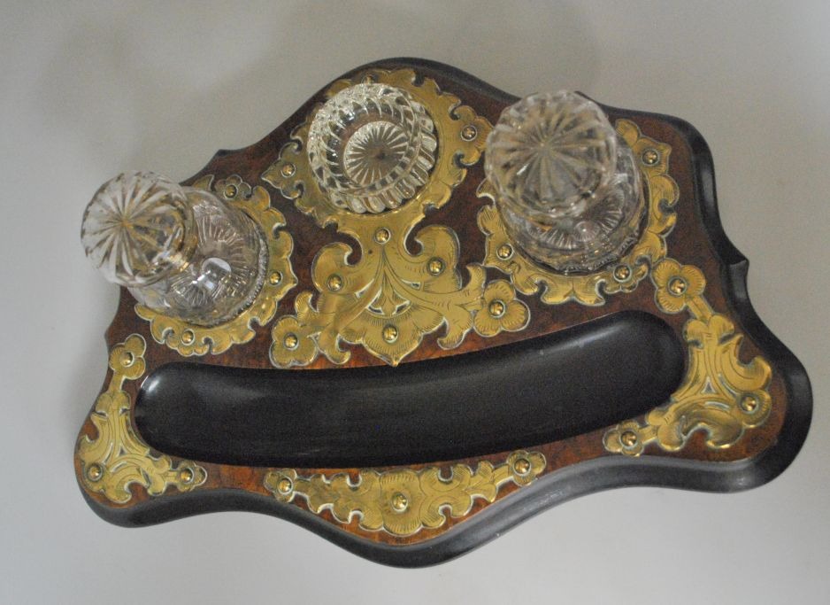 Engelsk skrivesæt, 19. årh. I poleret valnød med messing