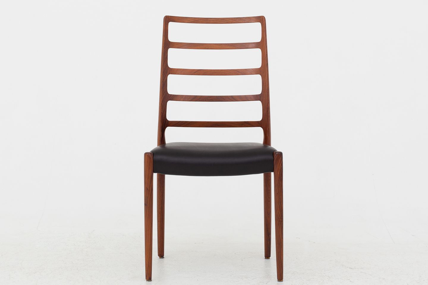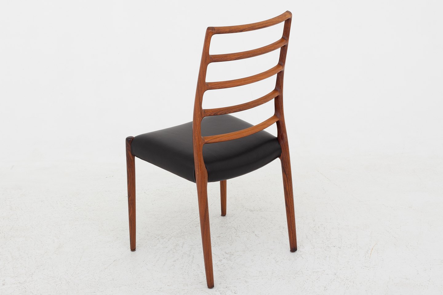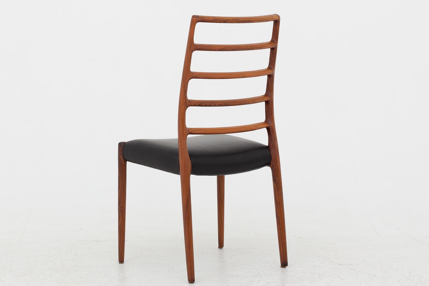 NO 82 - Højrygget spisestuestol i palisander med nyt, sort Palace-læder.