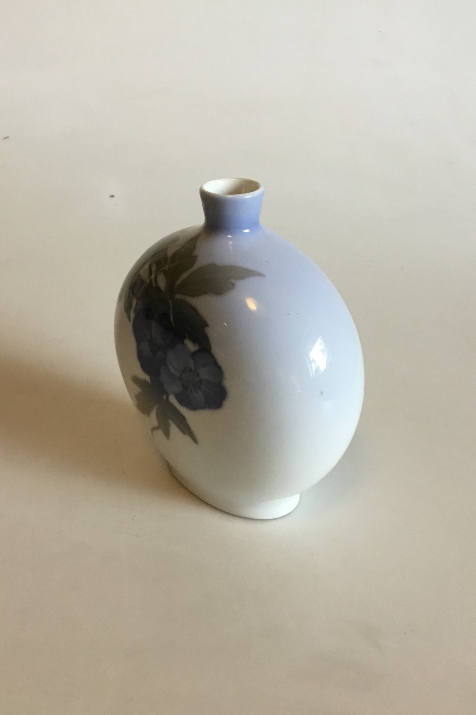 Royal Copenhagen Flad vase med blå blomst No 1763/209B. Måler 14,8 cm. Fra 1899-1922