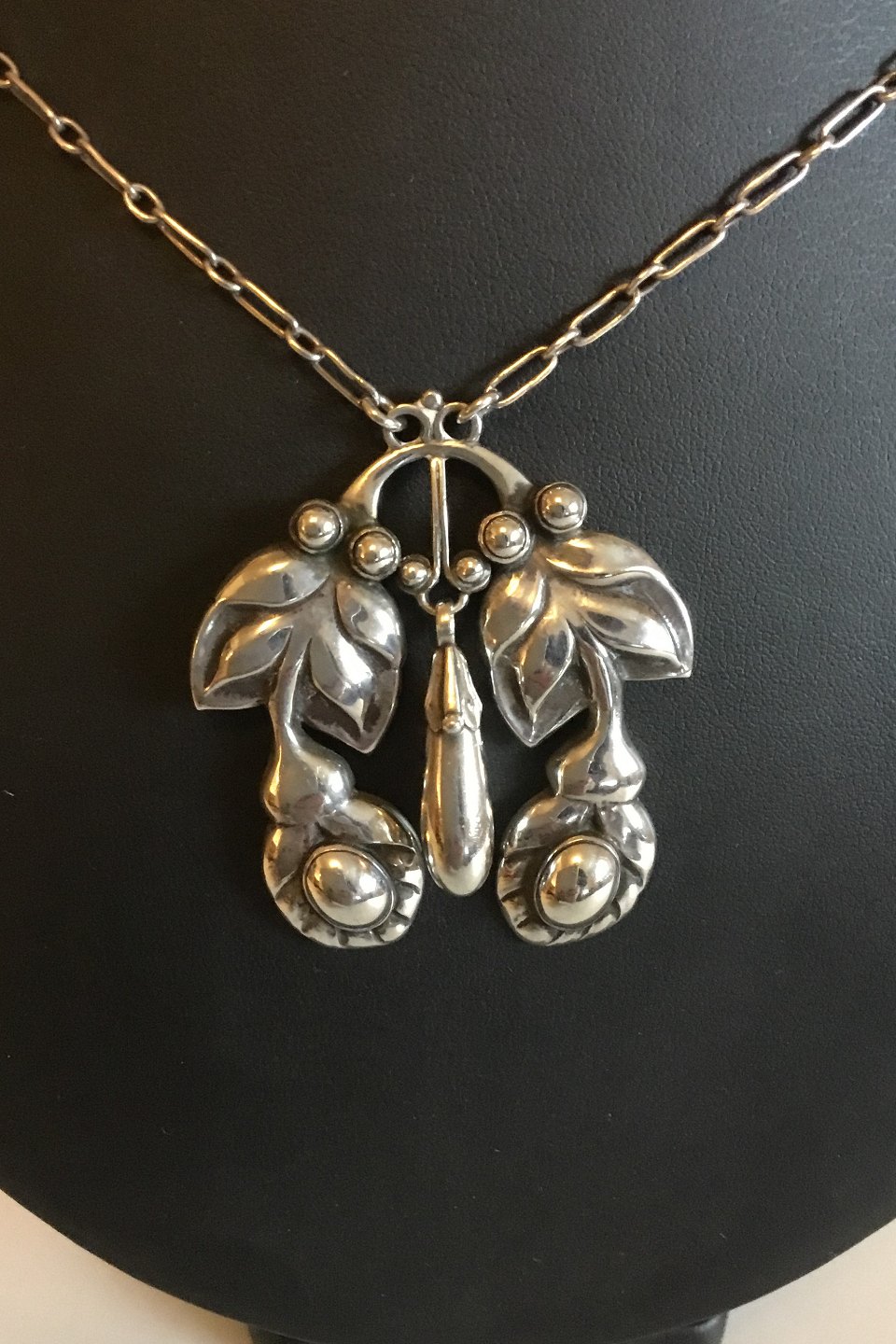 Georg Jensen 830 Sølv Art Nouveau Halskæde med Sølvsten No 26