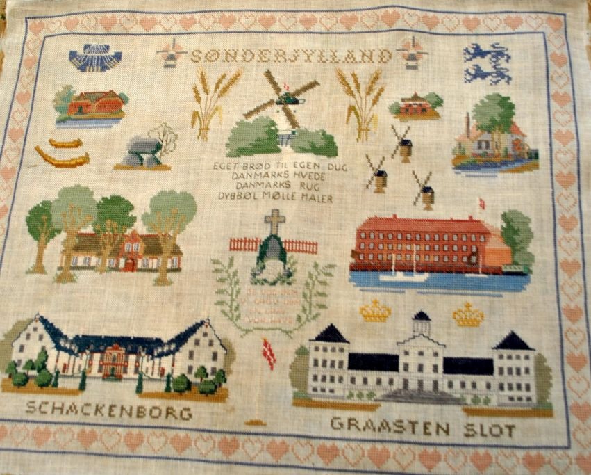 Navneklud, Sønderjylland, 20. årh. Danmark. 37 x 46 cm. Uindrammet.