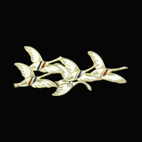 Erik Magnussen. Sterling Silver 'Swan' Brooch with Enamel #1