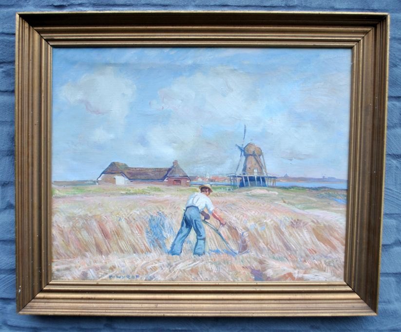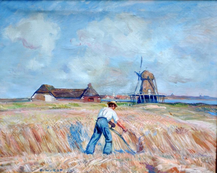 Nyrop, Børge (1881 - 1948) Danmark: Høst scene ved Vestkysten