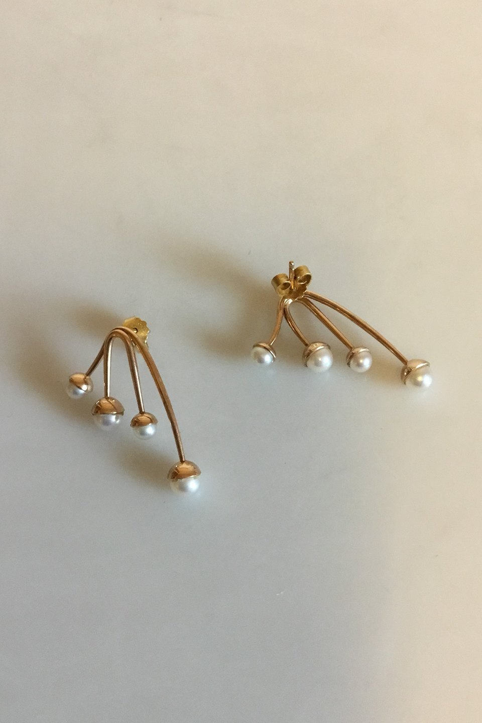 Bent Knudsen Leddelt Halskæde og Ørestikker i 14 K Guld med perler
