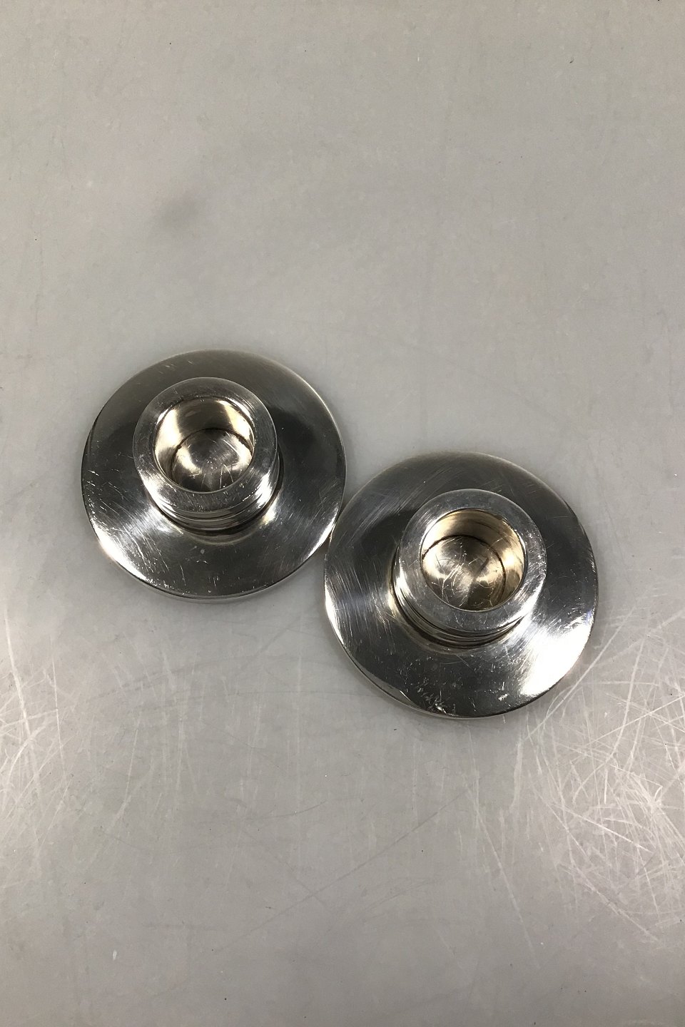 Georg Jensen Sterling Silver Pyramid Candlesticks Pair No 747A Harald Nielsen H 2.7 cm/1.06" Diam 7 cm/2.75" Combined Weight ca 160 gr/5.66 oz.