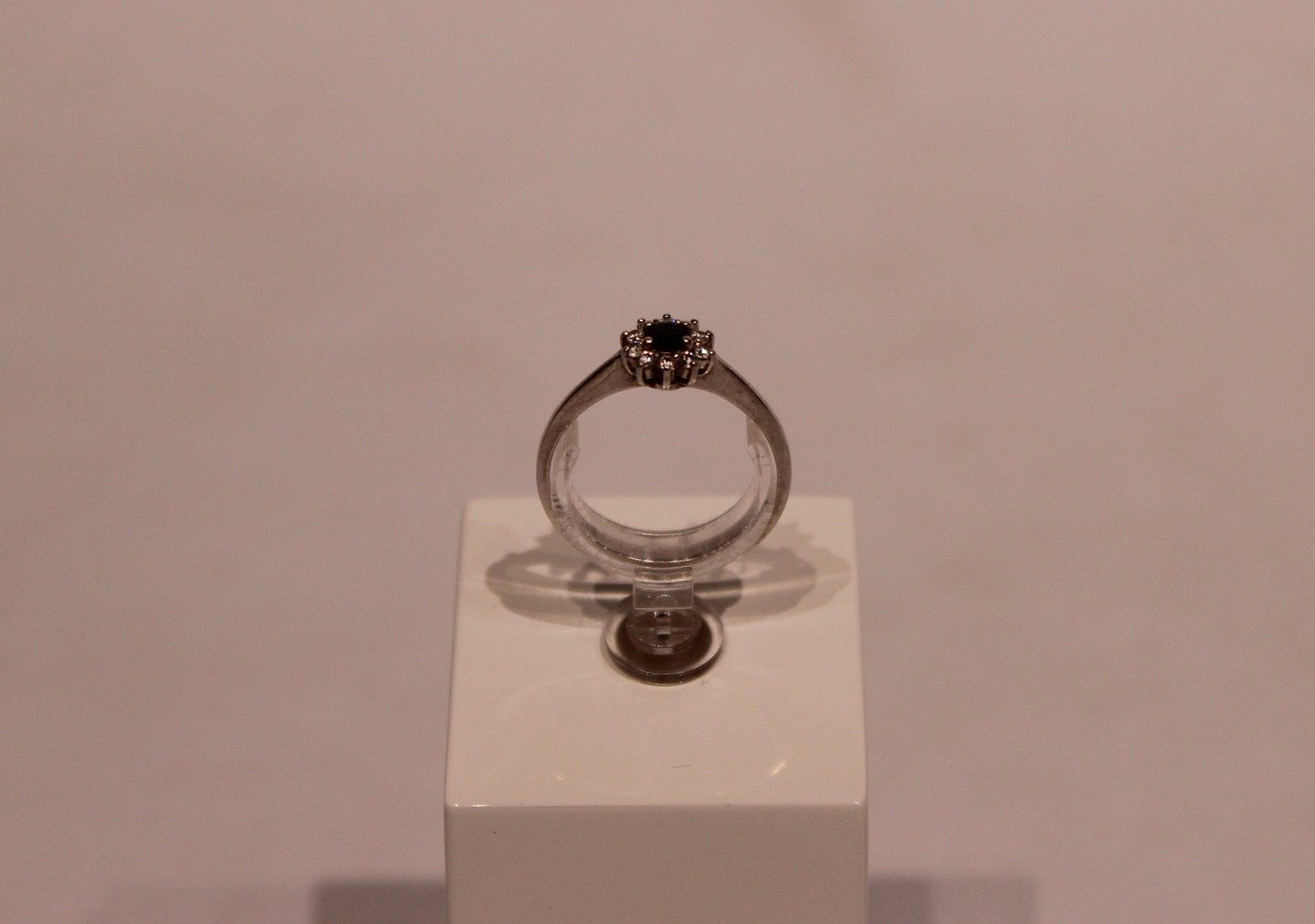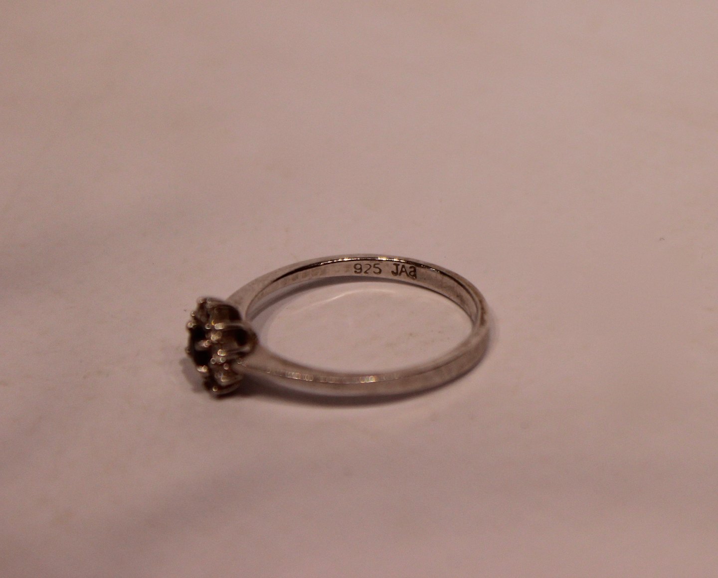 Ring af 925 sterling sølv med zafir og zirkoner, stemplet JAa.