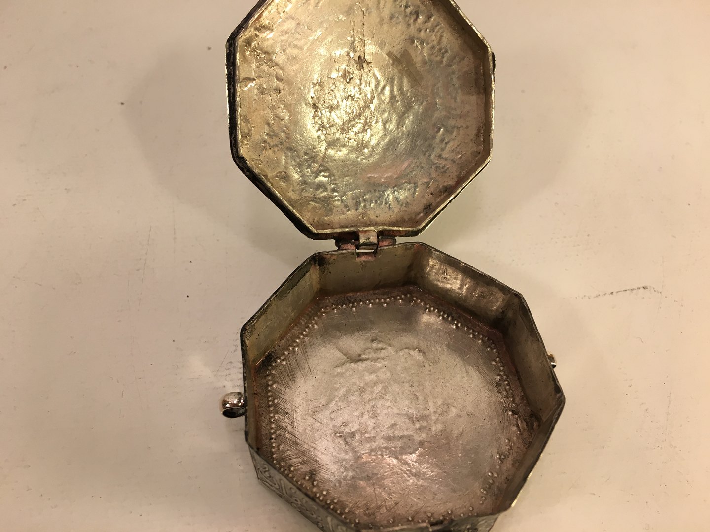 Silver box. eight edged.