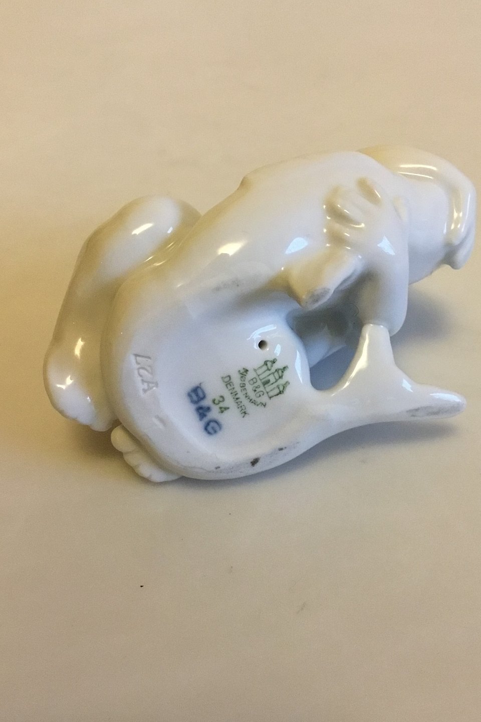Bing & Grøndahl Blanc de Chine Figur af barn der kigger ned på fisk No 4034
