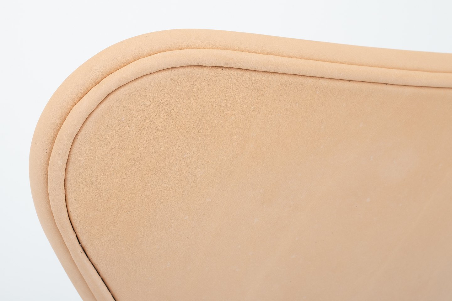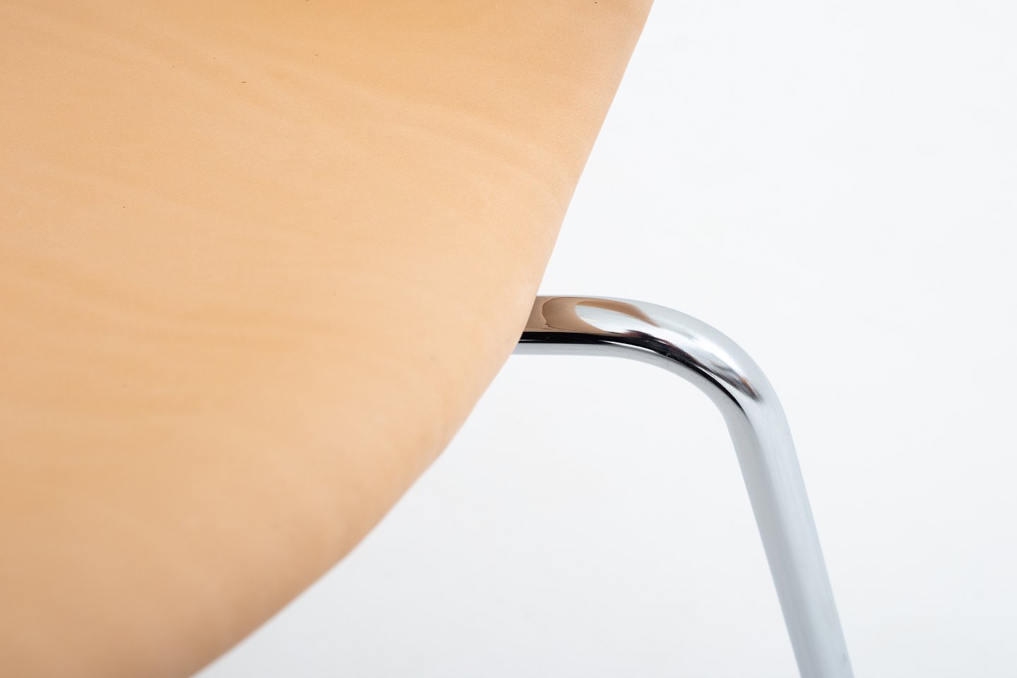 AJ 3107 - Nybetrukket "Syver"-stol i naturlæder med stel i stål. Vi tilbyder polstring af stolen med stof eller læder efter eget valg.
