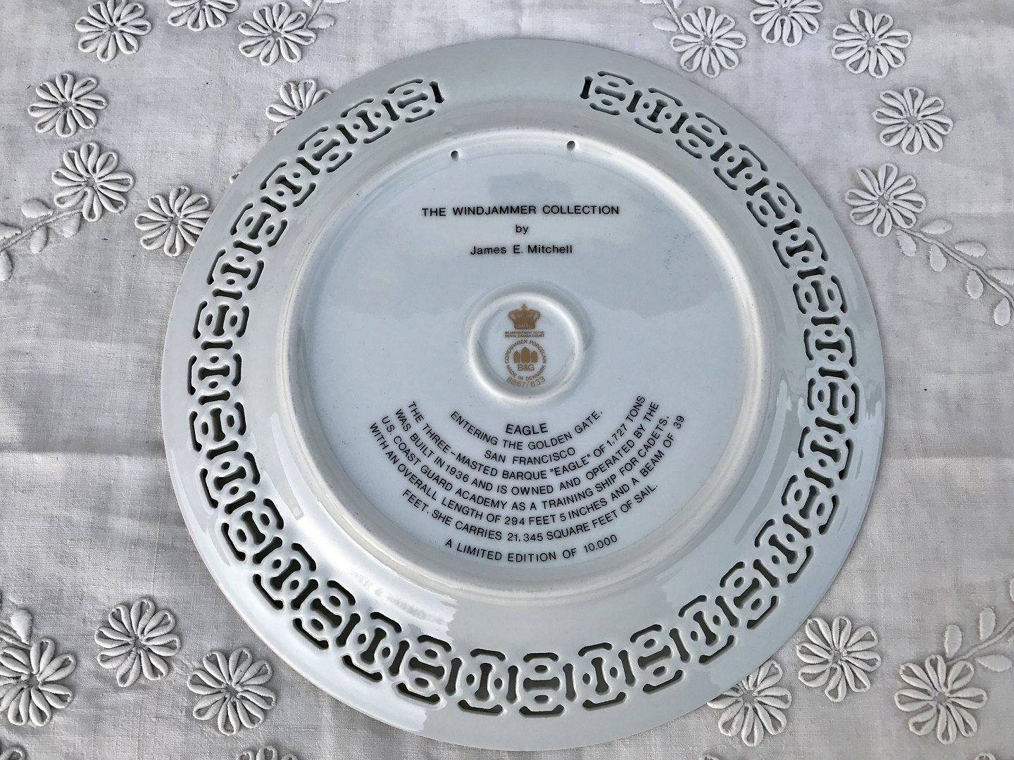 Bing & Grøndahl, Skibsplatter, Windjammer, Nr2 “Eagle” ved Golden Gate, 28cm i diameter, Design James E. Mitchell *Perfekt stand*