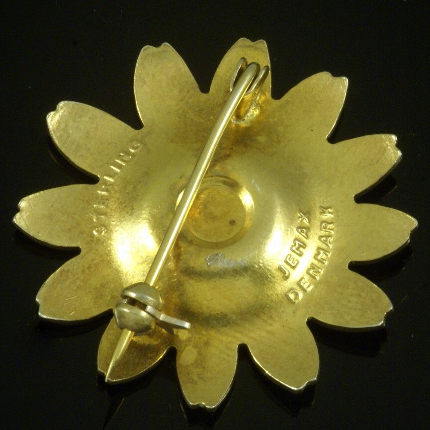 Jemax Copenhagen. Marguerit Broche i forgyldt Sterling Sølv med hvid emalje