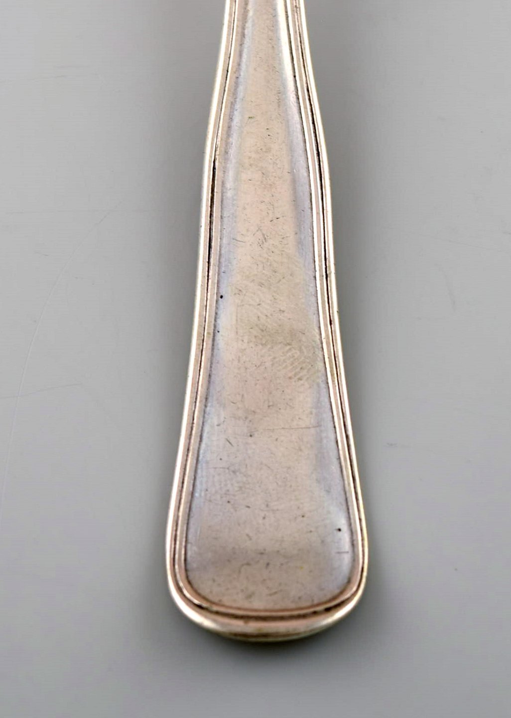 Dansk sølvsmed. Dobbeltriflet frokostgaffel i tretårnet sølv. Ca. 1900.