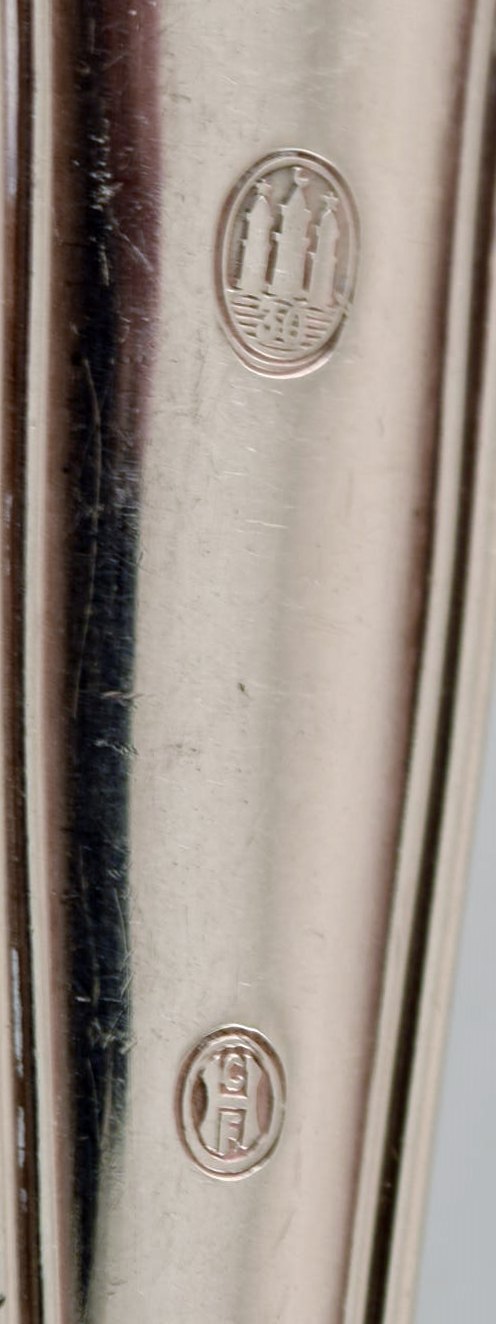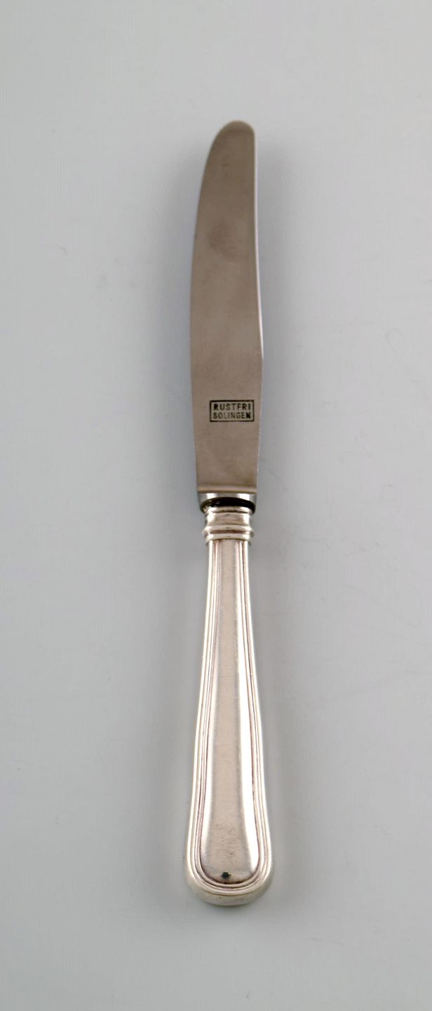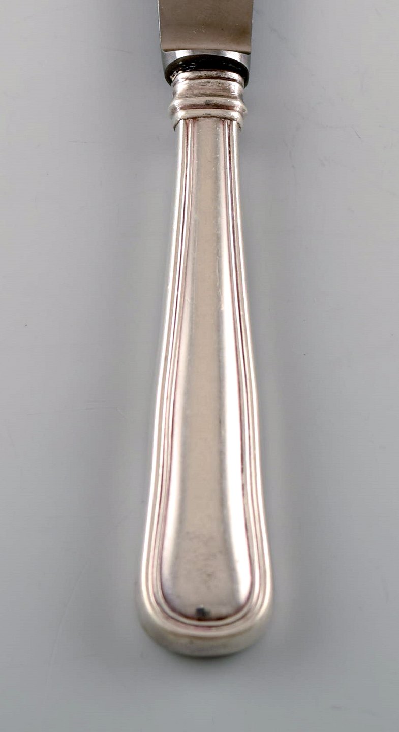 Dansk sølvsmed. Dobbeltriflet frugtkniv i tretårnet sølv. 1930'erne.