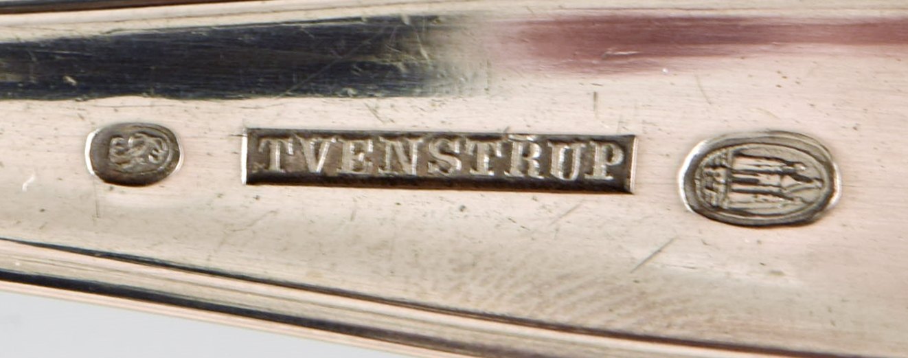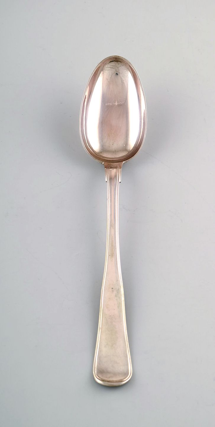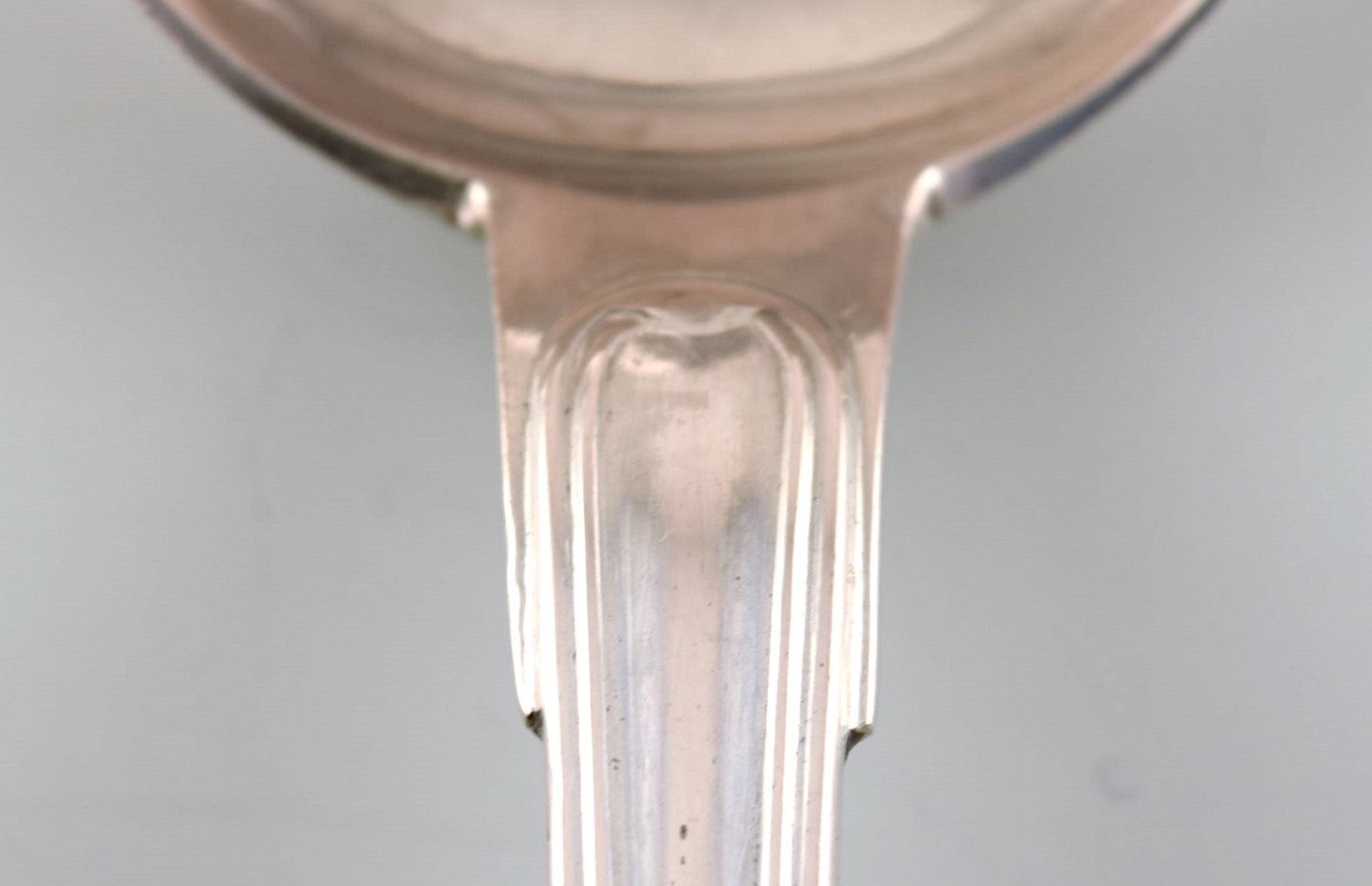 Dansk sølvsmed. Dobbeltriflet stor suppeske i tretårnet sølv. 1950'erne.