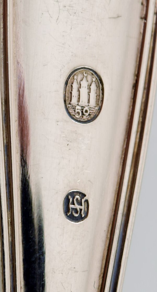 Horsens Sølv. Dobbeltriflet stor suppeske i tretårnet sølv. 1950'erne.