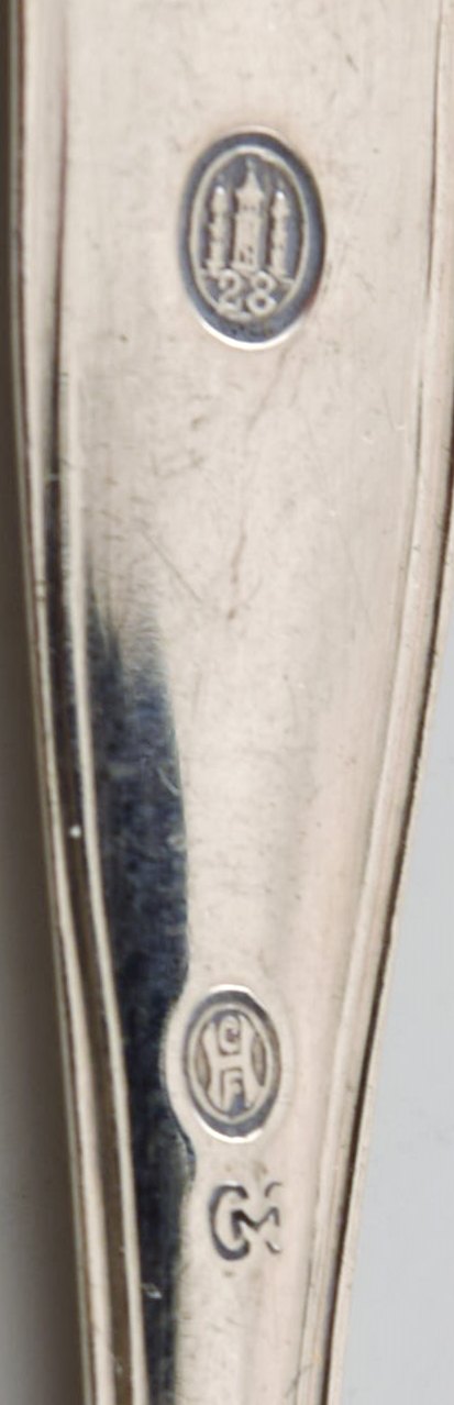 Cohr theske, dobbeltriflet bestik af tretårnet sølv. 1920/30'erne.