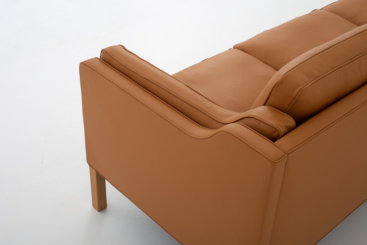 BM 2213 - Nybetrukket 3 pers. sofa i Savanne Beige-læder og ben i eg. KLASSIK tilbyder polstring af sofaen med stof eller læder efter eget ønske. Kontakt os venligst for mere information.