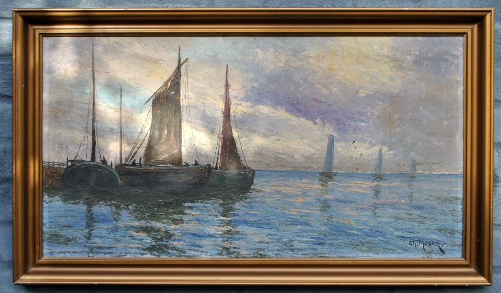 Moser, Christian (1838 - 1894) Netherlands: A port. Oil on canvas. Signed: Ch. Moser. 37 x 69 cm.