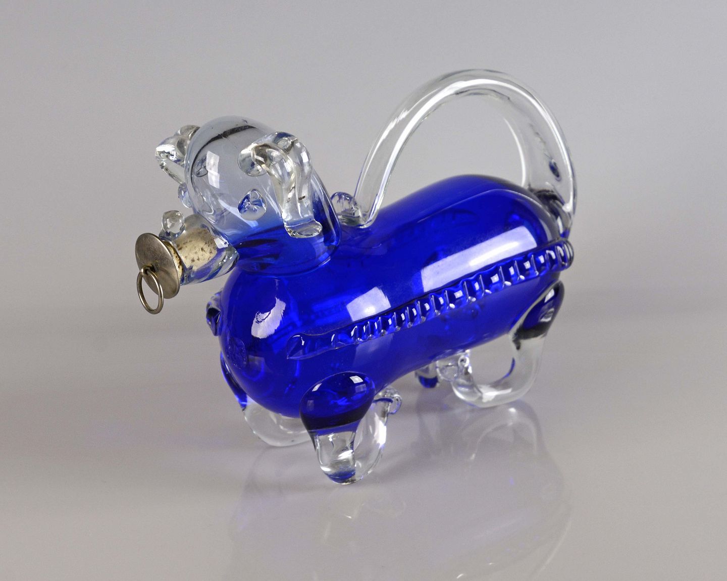 Snapsehund i glas med korkprop formentlig fra Holmegaard