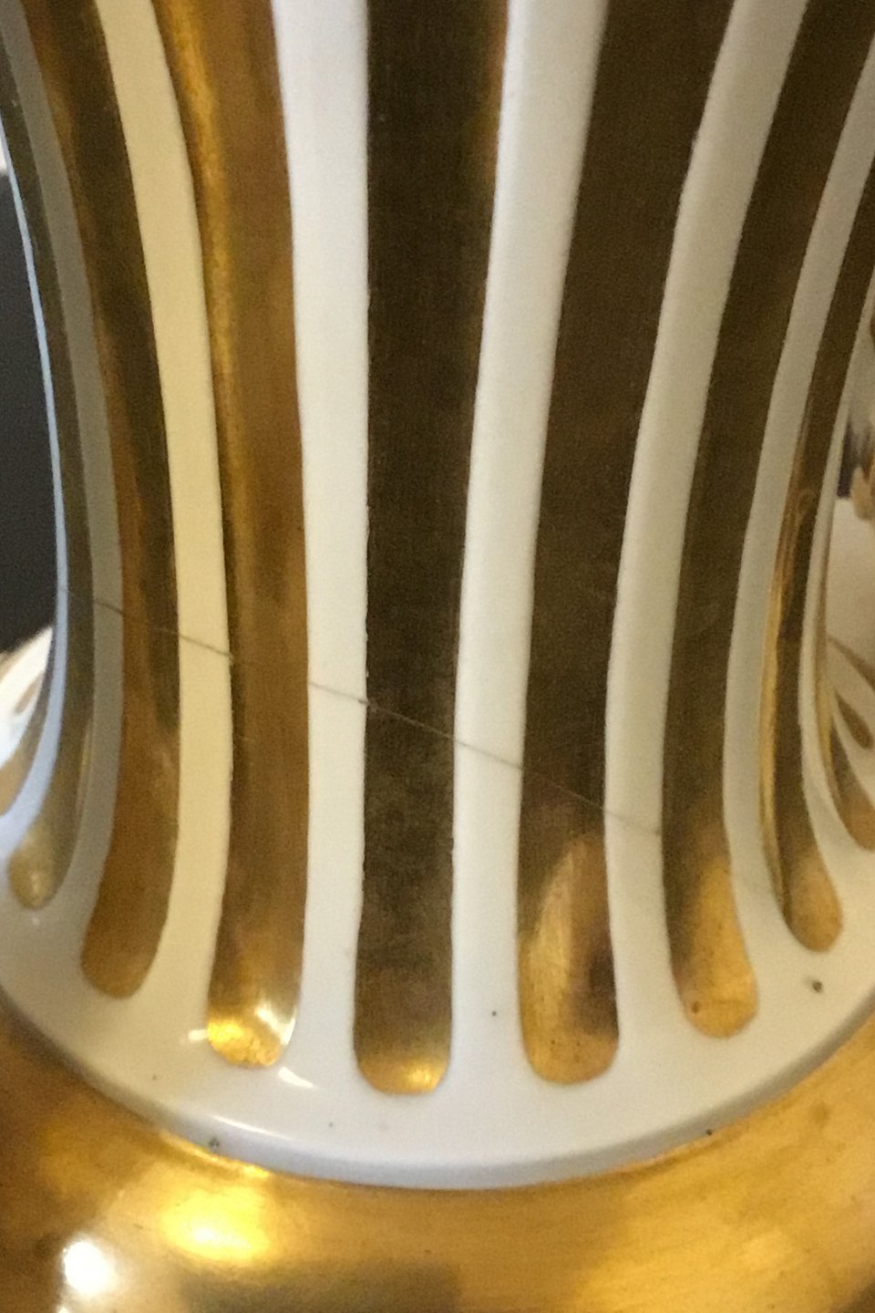 Royal Copenhagen Et sæt på to balusterformede lamper på sokkel dekoreret med guillander, vædderhoveder og guld. Med Juliane Marie mærke fra 1905-12.