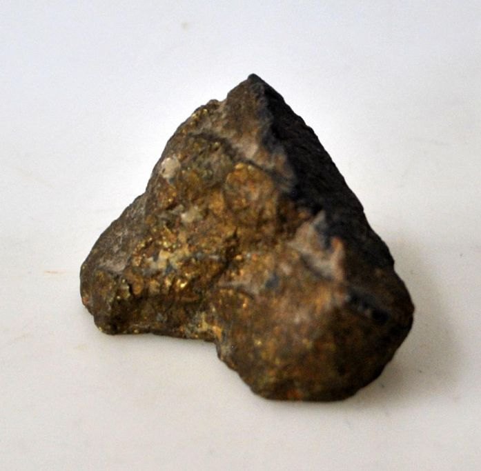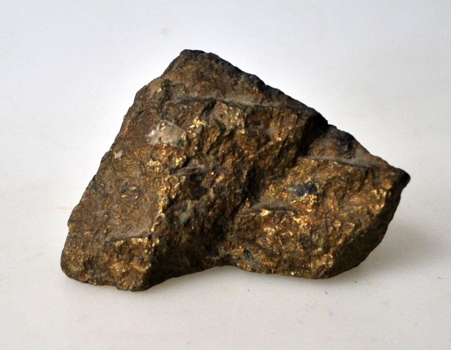 Pyrit - også kaldet Katte- eller narreguld. Vægt.: 218 gram. L.: 8 cm. Pyrit krystalliserer sig i et kubistisk system. Fra mineralklassen: Sulfitter eller sulfosalte.