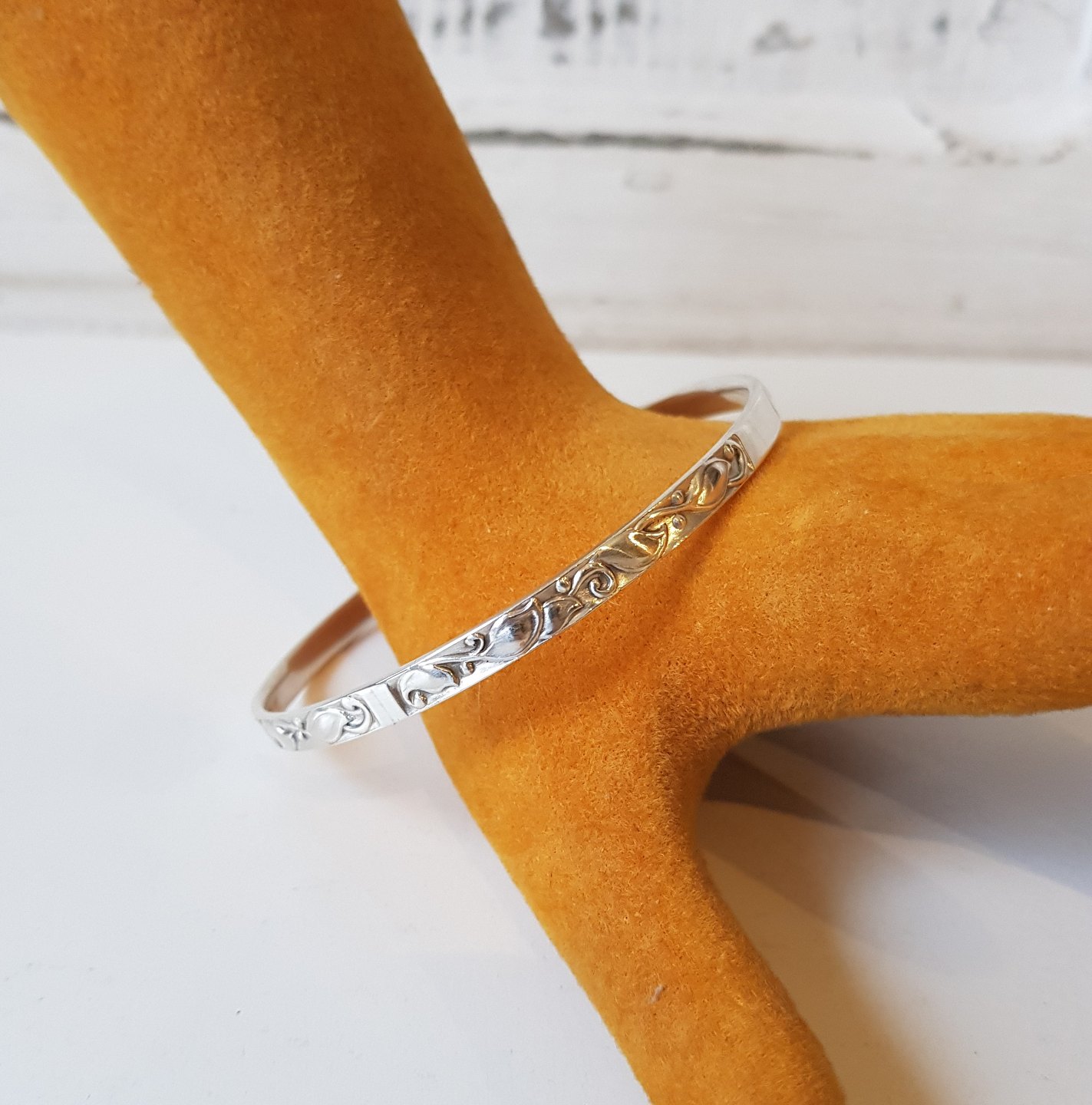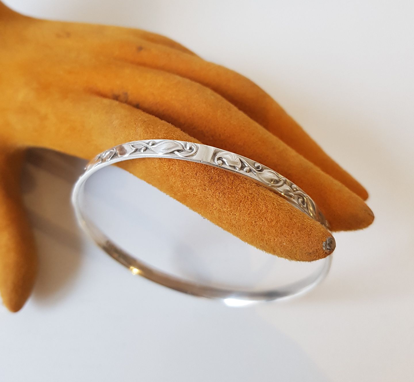 Evald Nielsen sølv armring, dekoreret med floralt motiv i relief.
