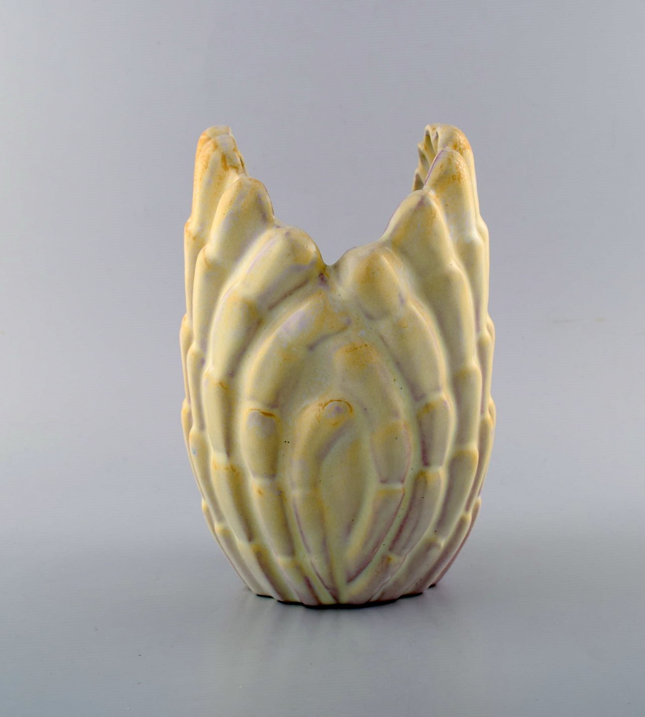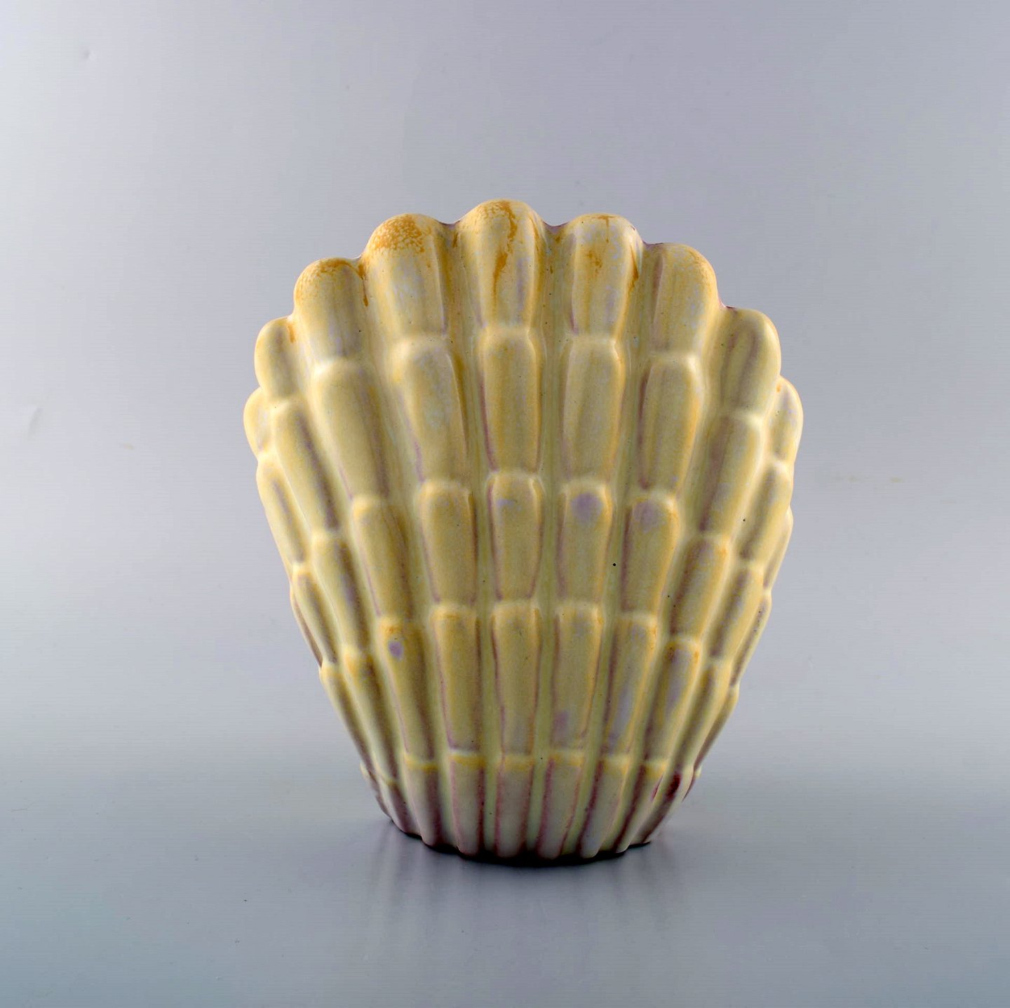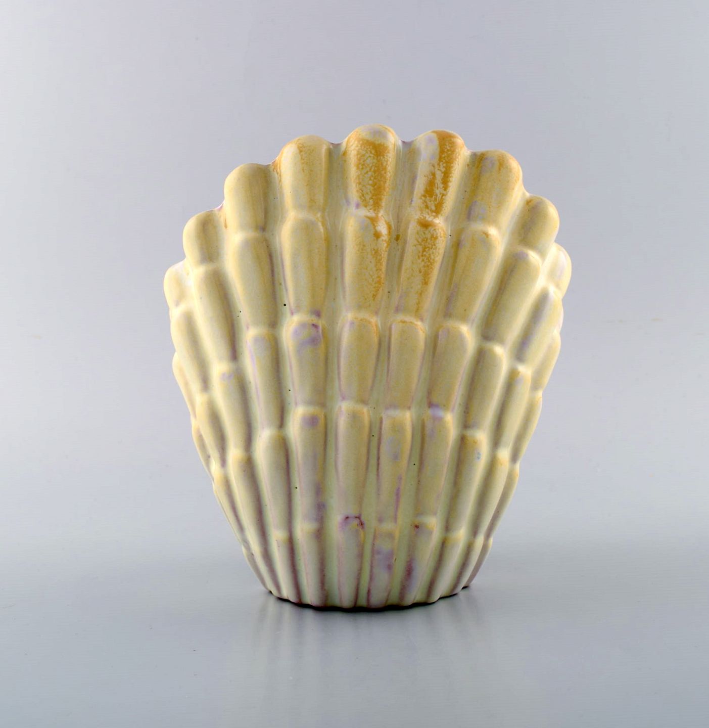Vicke lindstrand for Upsala-Ekeby. Art deco muslingeformet vase i glaseret keramik.