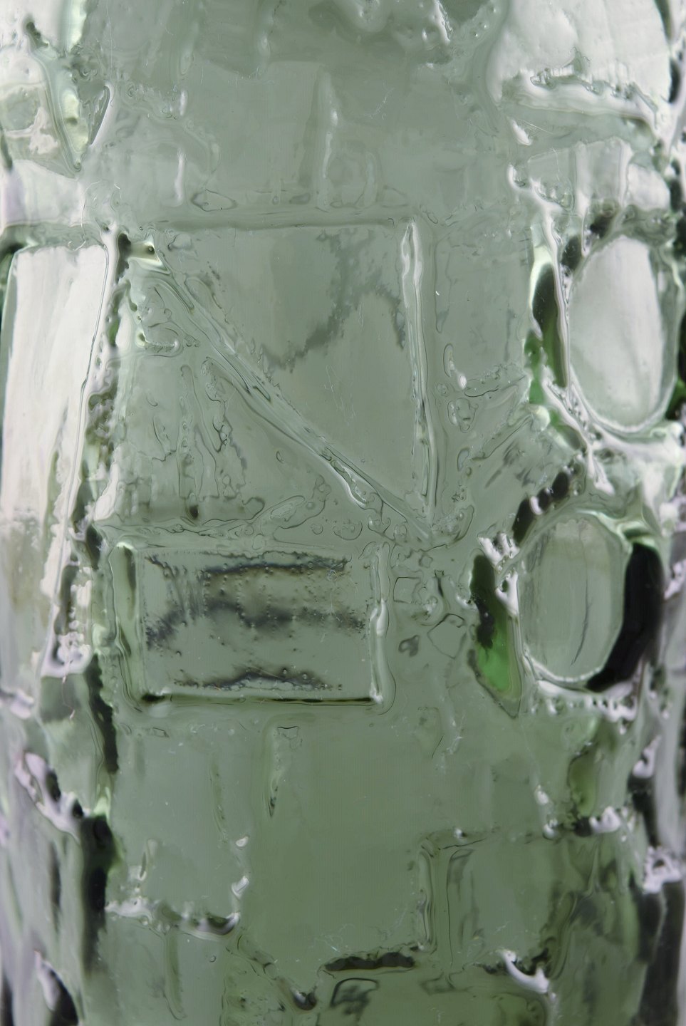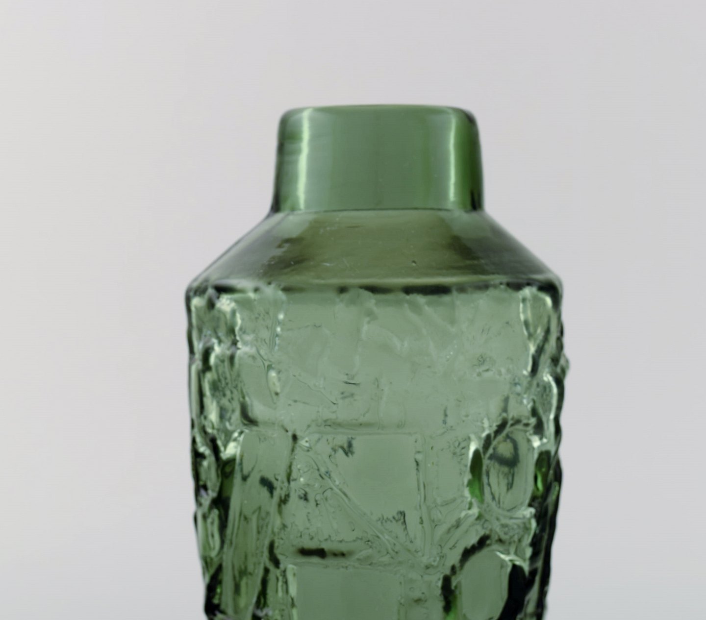 Finsk glaskunstner. Vase i grønt mundblæst kunstglas. Abstrakt motiv. 1970'erne.